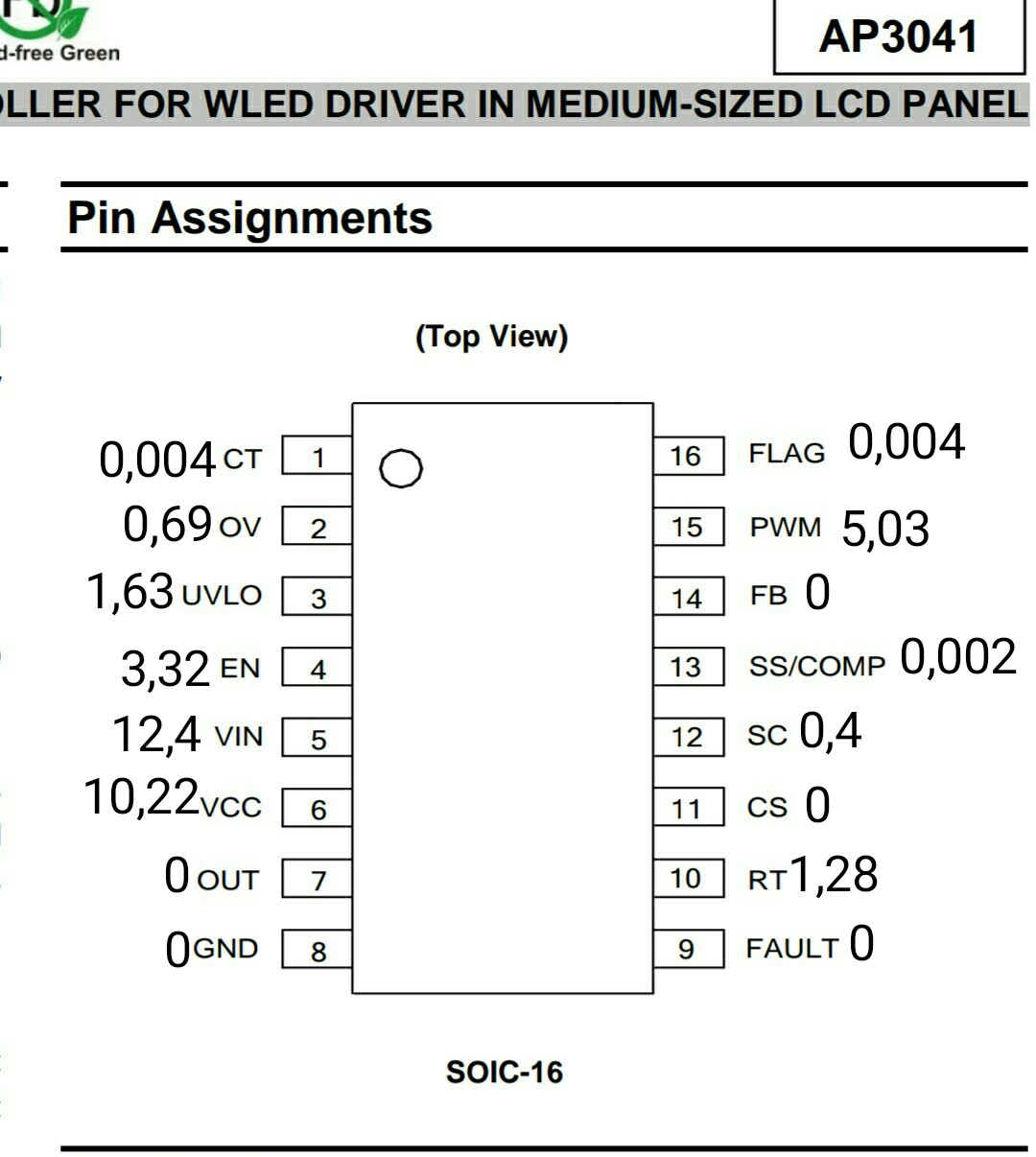 Hello, I have a problem with the PSU of the TV Haier 50 "same PSU as the Sansui model STY095 and other Models, I have replaced all the LEDs, two mosfet aod4286, check resistors, checked filter / inflated capacitors and nothing. Measuring voltage on pin 3 of the ic ap3041 I have 1.65vdc, but I miss that when I place the tip of the fluke the LEDs turn on, thinking that it would be a false contact, I rectified the welding but the problem continues.On the board is present 5, 12 vdc but I have raised the 30vdc to 33vdc. Any other help would be welcome to solve the problem.
