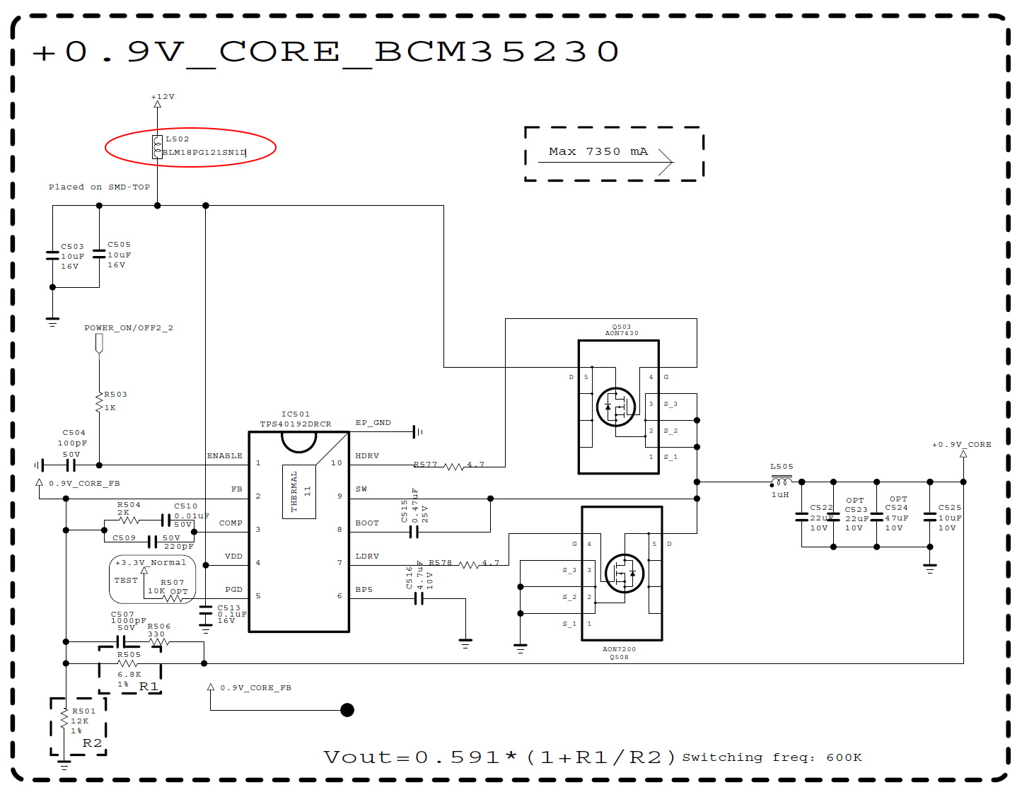 So the high side MOSFET Q503 is shorted between S and D, but was there shorts between GROUND and the output side of the L502?