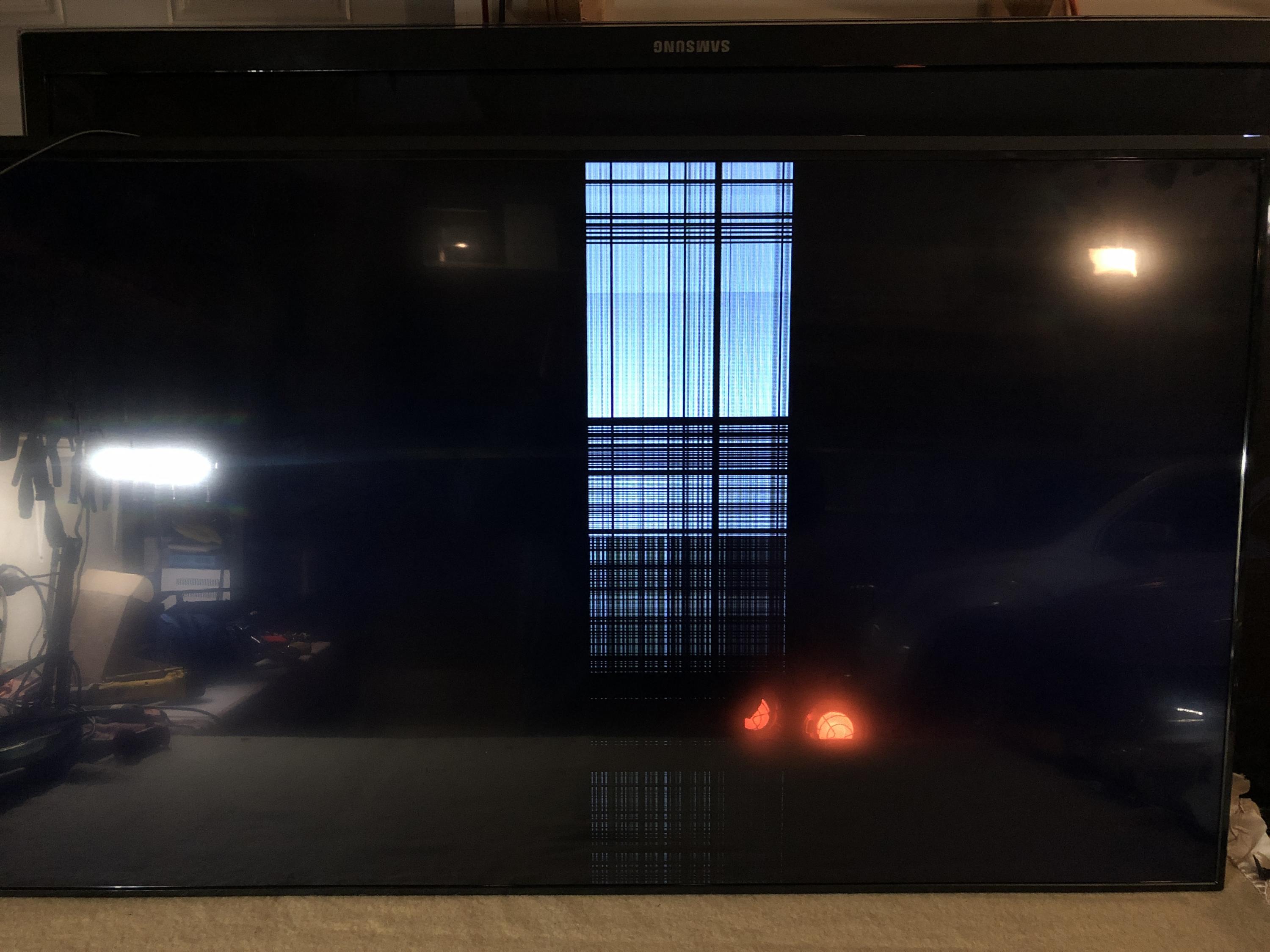 When I plug it in, the backlights come on and stay on. There is however nothing on the screen. I first thought it might be the T-CON and replaced that with a new one from SJ. That didn't help. I thought to replace the Mainboard and the T-Con again, currently when switched on, it shows this garbled image, however if I use the remote on it, I can see the TV respond to the remote(change of garbage on screen).