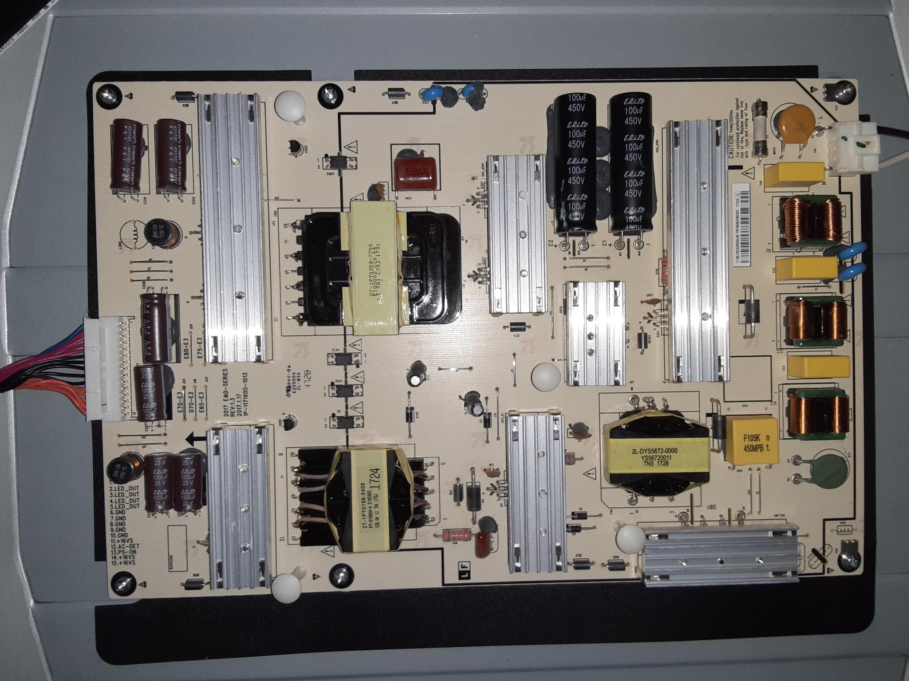On my Power Supply board, I have the correct standby voltage - 16V. But I have NO voltage going to the LED strips on this board and hence none on the mainboard. I tried disconnecting the main-board and remeasuring, but it made no difference in LED V.