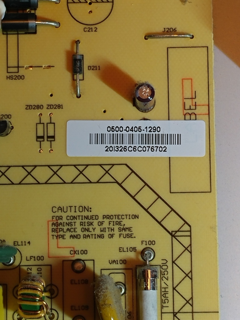 Took off the back cover and found the P/S board burnt. Looks like its beyond repair since it got some of the traces on the back.