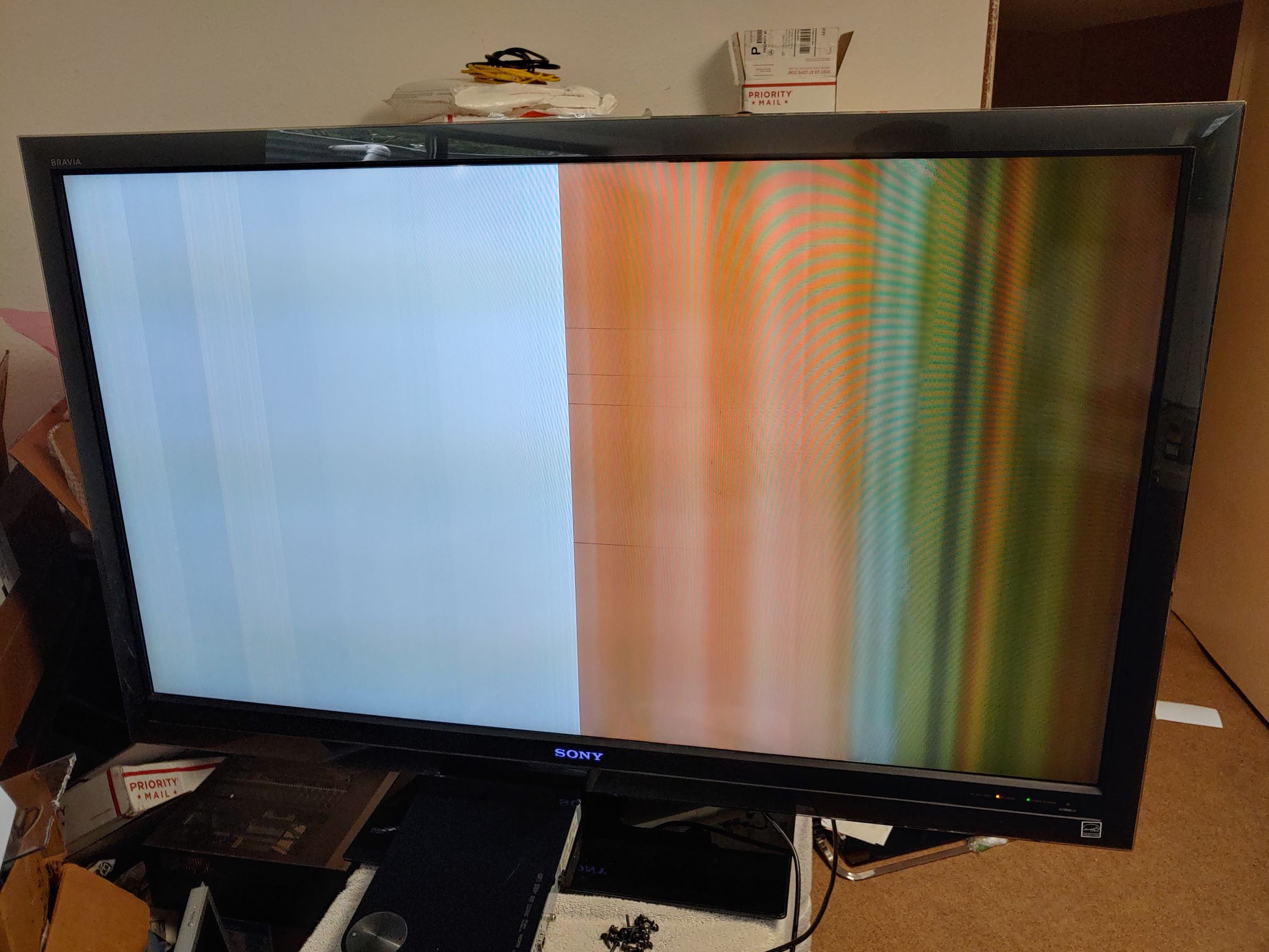 I've been working on a Sony KDL-52W5100 that has a seemingly randomly occurring issue with vertical lines on the screen. These line span across the entire panel depending on what is being displayed, they aren't limited to just one area. The weird thing is, sometimes the TV will power on and display a perfect picture. When working, it will run for hours with no issues. Other times, the screen will be distorted from the second it powers on. When the lines are present you can sometimes hear a high pitched whine.