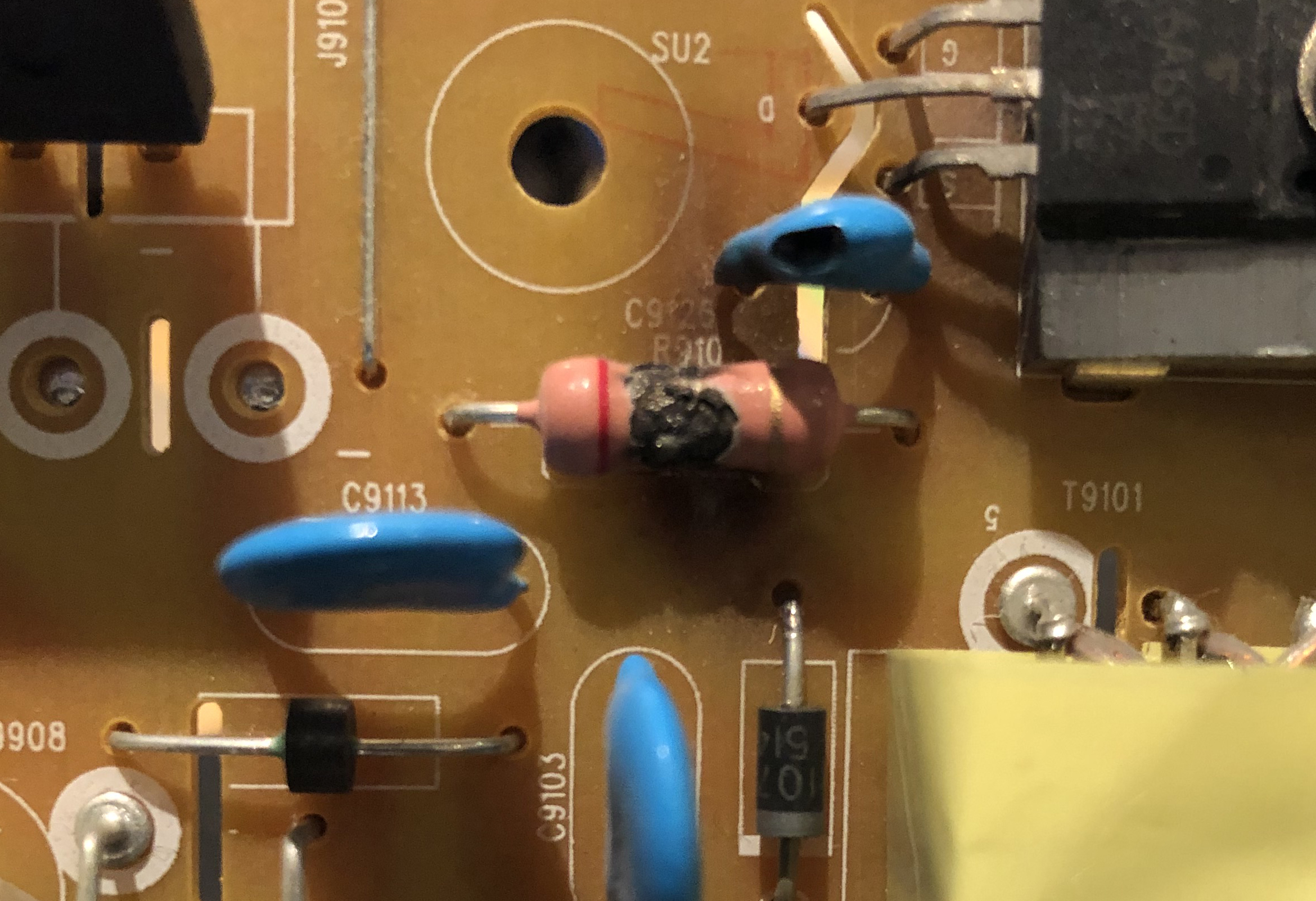 As in one of the pictures there seem to be two burned resistors (?) (or whatever they are called) - a blue one and pink one.