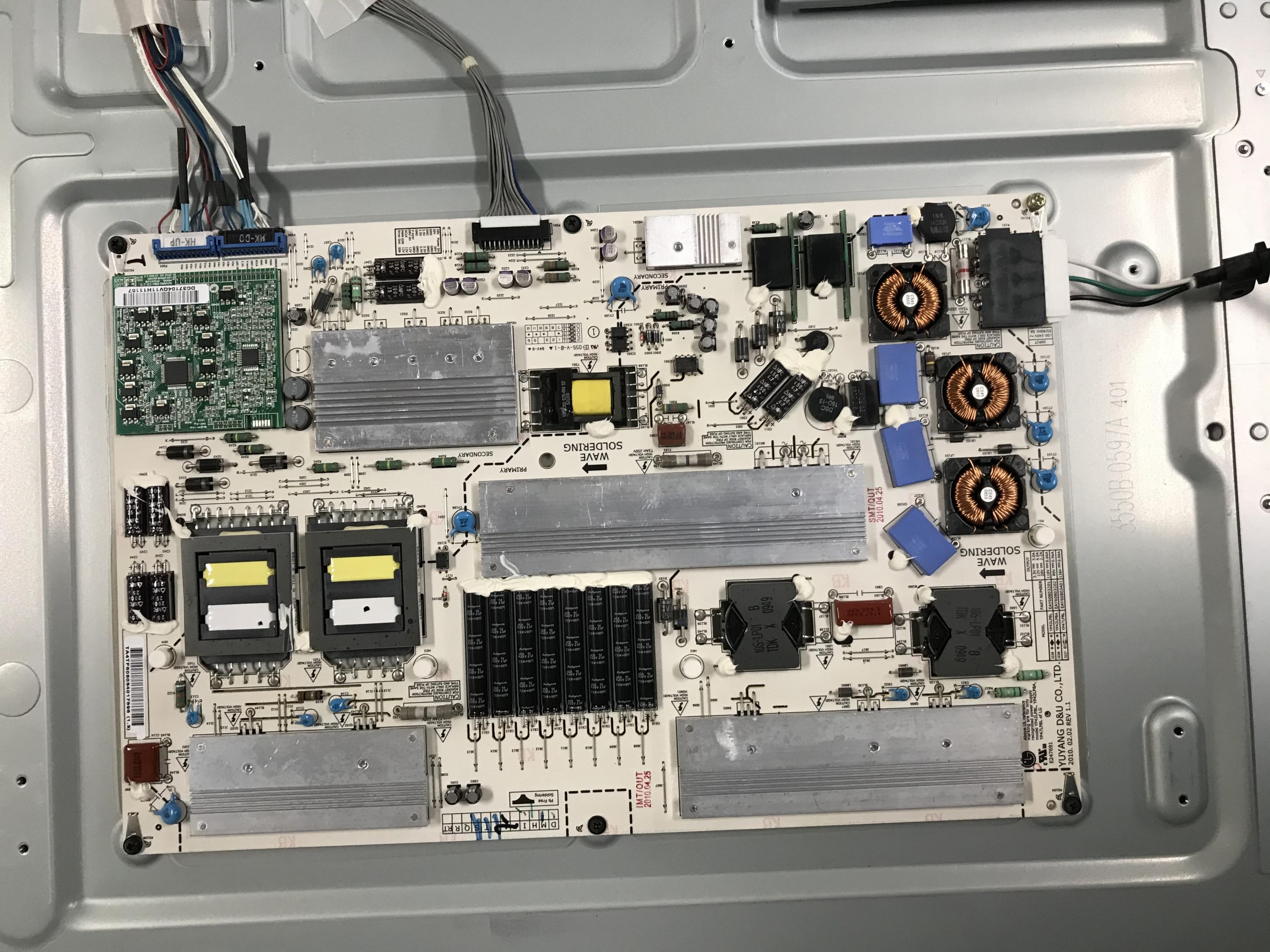 On a side note, I obtained a 55" version of this TV (LG 55LV5500-UA.AUSYLJR) in 2016 and it failed in the same manner. I ended up replacing the main board for that one.