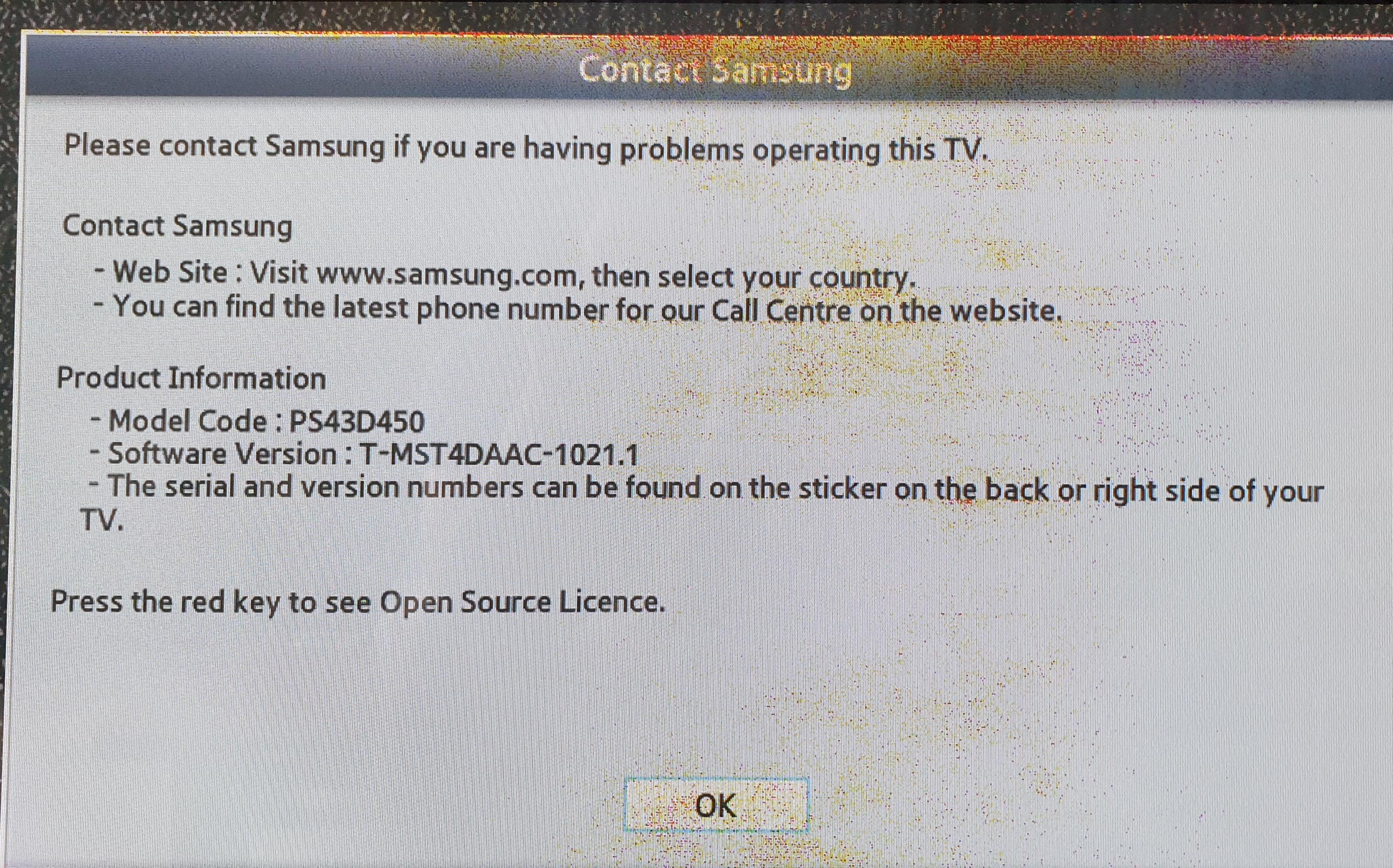 Re: Samsung plasma tv PS43D450A2 pixel issues