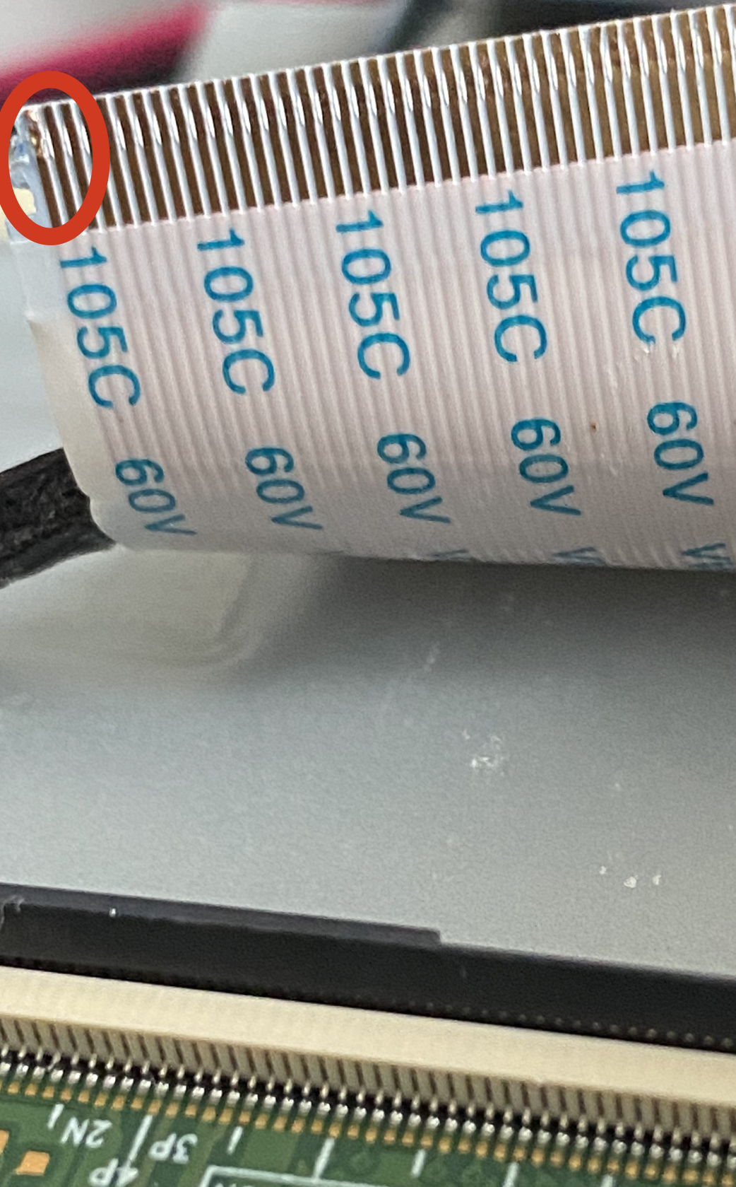 I might have damaged the ribbon when I tried to connect it back. I had to unplug both of the ribbons from the driver board when I replaced the led strips. And then maybe when I put everything back and plugged the ribbons back into the driver board I might have bent that one? Not sure...