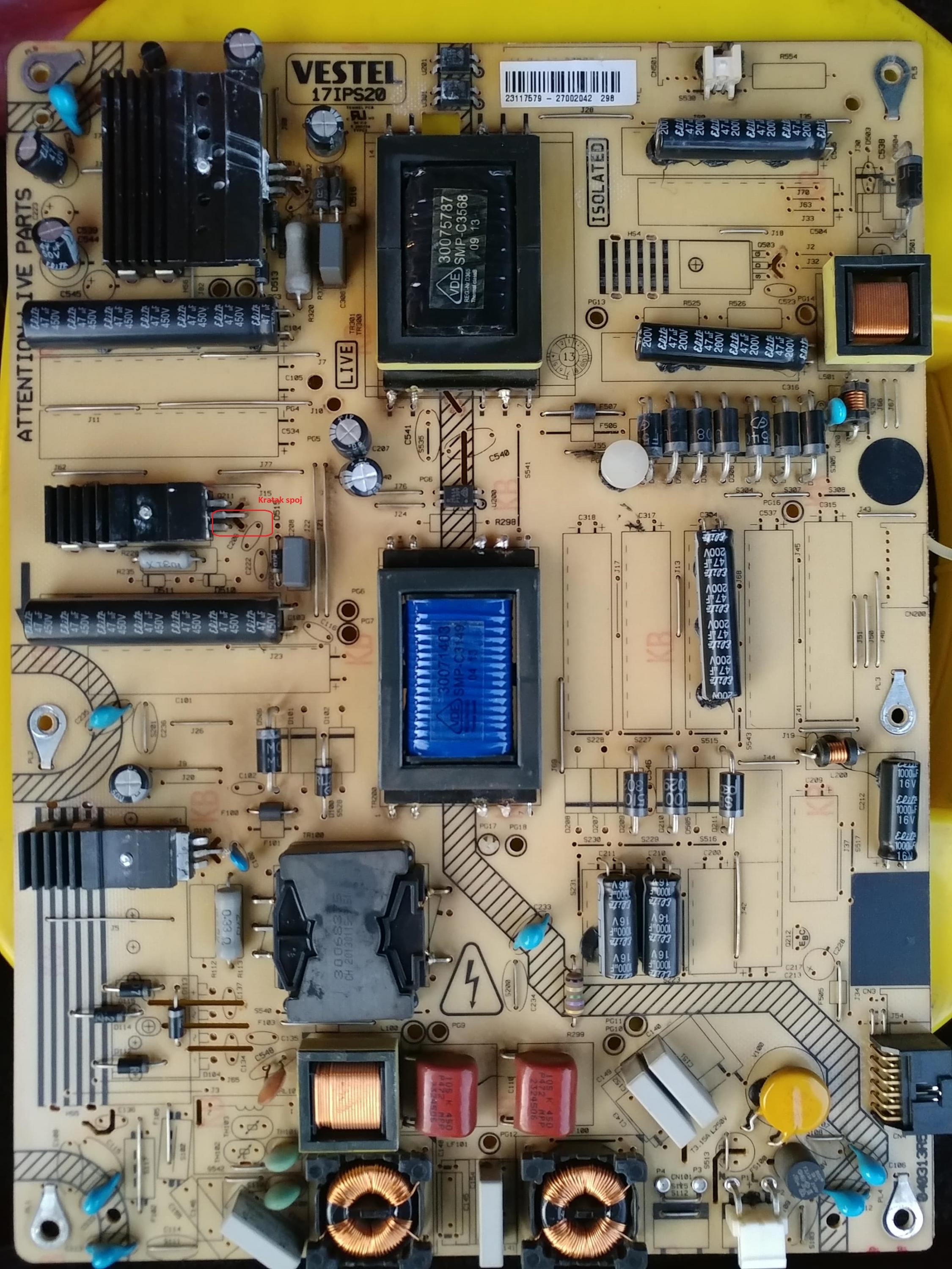 yesterday, I have killed 17IPS20 23117579-27002042, by accidentally making short circuit on MOSFET Q211m while trying to measure coltage on its legs. According to the schematics I could find in the Internet Q211 is FQPF8N60C. Please have a look at the attached picture. I have short circuited Gate and Source. After this I don't even have StdBy voltages on the connector.