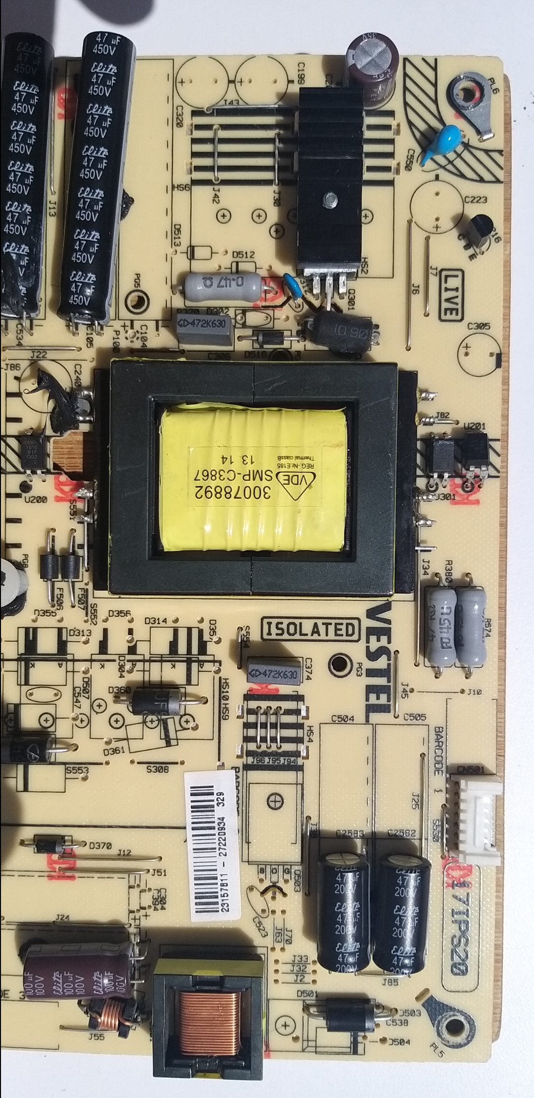 Re: Toshiba 48L3451DB dead 17IPS20 Rev6 psu