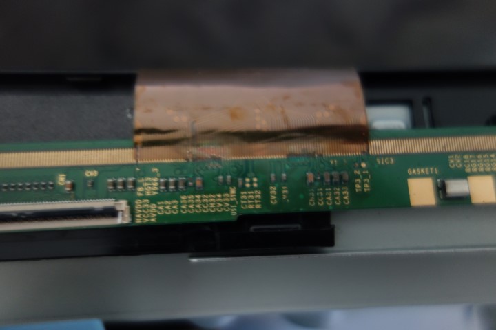 Hi, my 55S403 TCL Roku TV is suddenly showing a single wide vertical white stripe (from middle of the screen- ~8" wide). I started with cleaning and then changed the main board and the LVDS cable that runs from the main board to the display board. But no luck yet. Note: 1. the service# for my TV is 55S403TFAA and there is no T-Con board. 2. When turned on I see white light on the backside of the TV across the width- so, assumed no power board failure. Any suggestions would be highly appreciated. Thanks