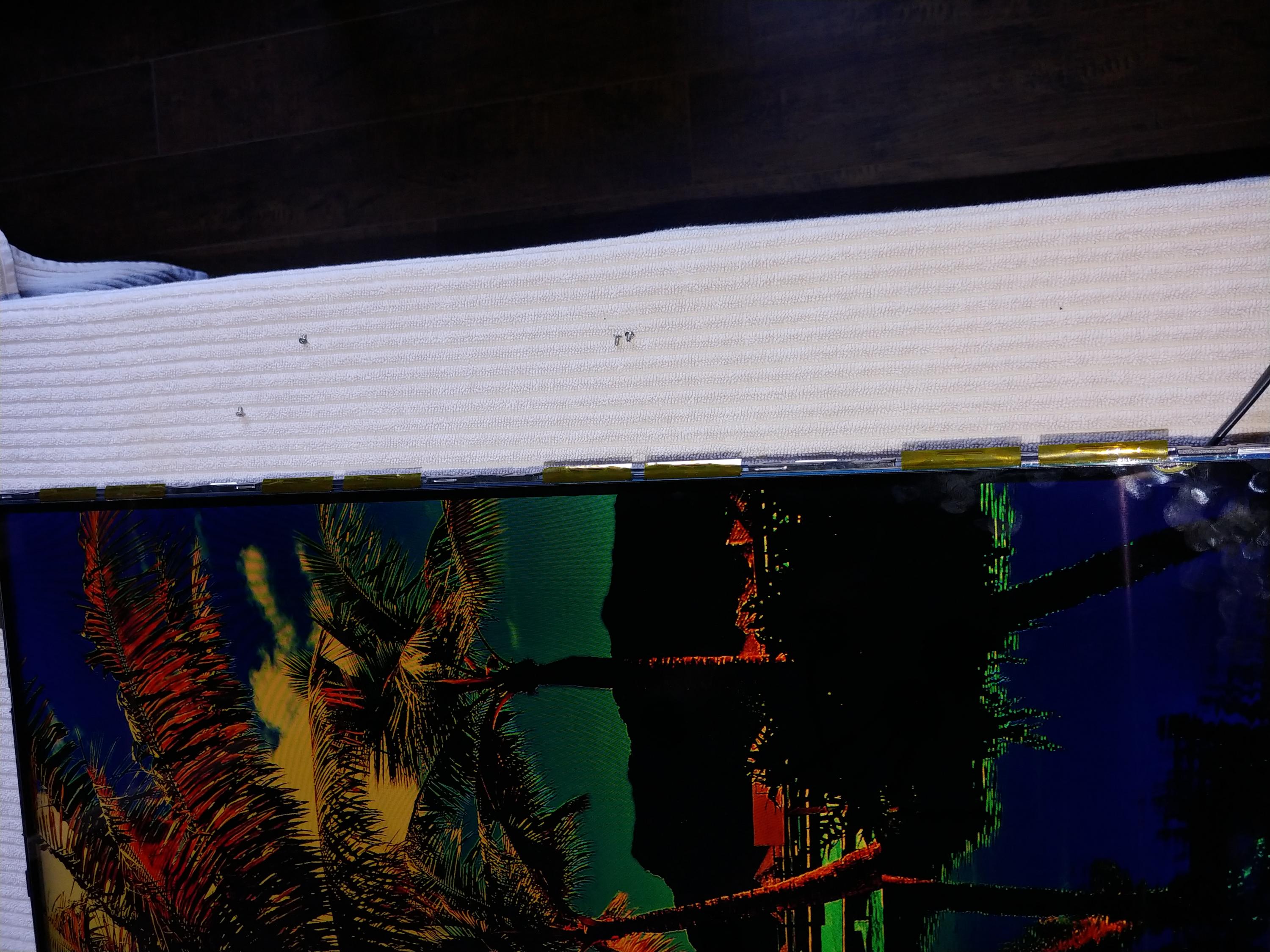 OOPPS.. i just take a look on yours others threat which described yours TV type LG UHD which it had tabs on the panel along the left and right side..you have panel fault .no fix for it :-(