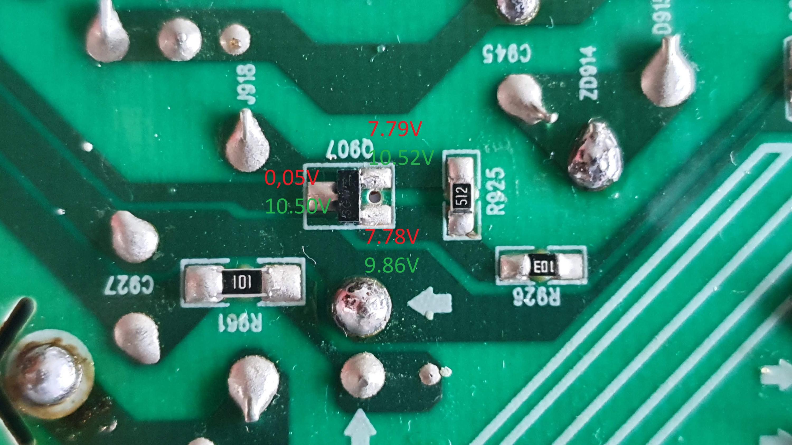 5) Did you verify if R916 is 4R7 or not on the good board? That is important, you must verify that.