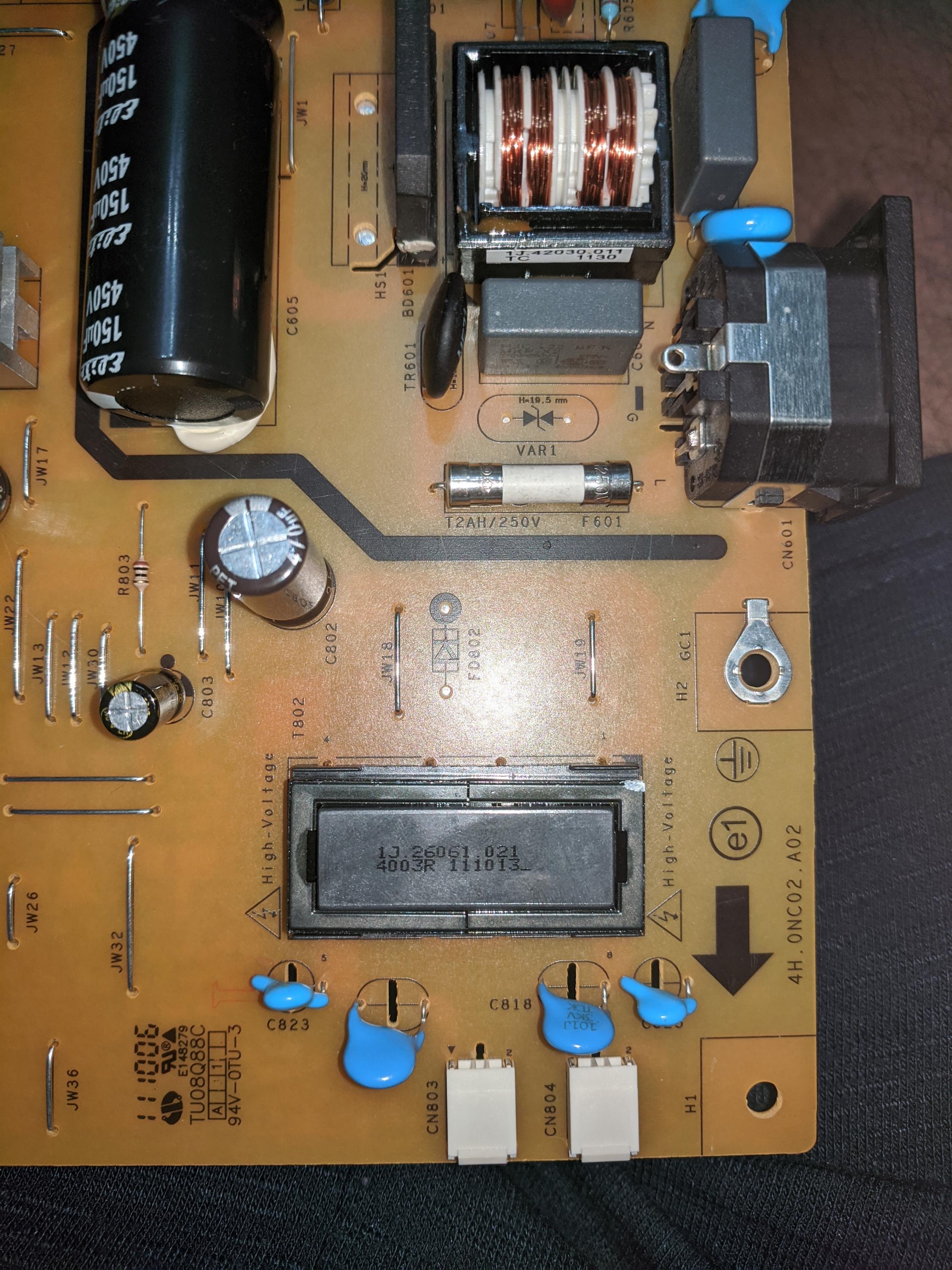 I have attached some picture to gi with the issue......please help! I am not fully aware on how to test each component or what each component is in the power board so please point me in the right direction for me to read up on stuff