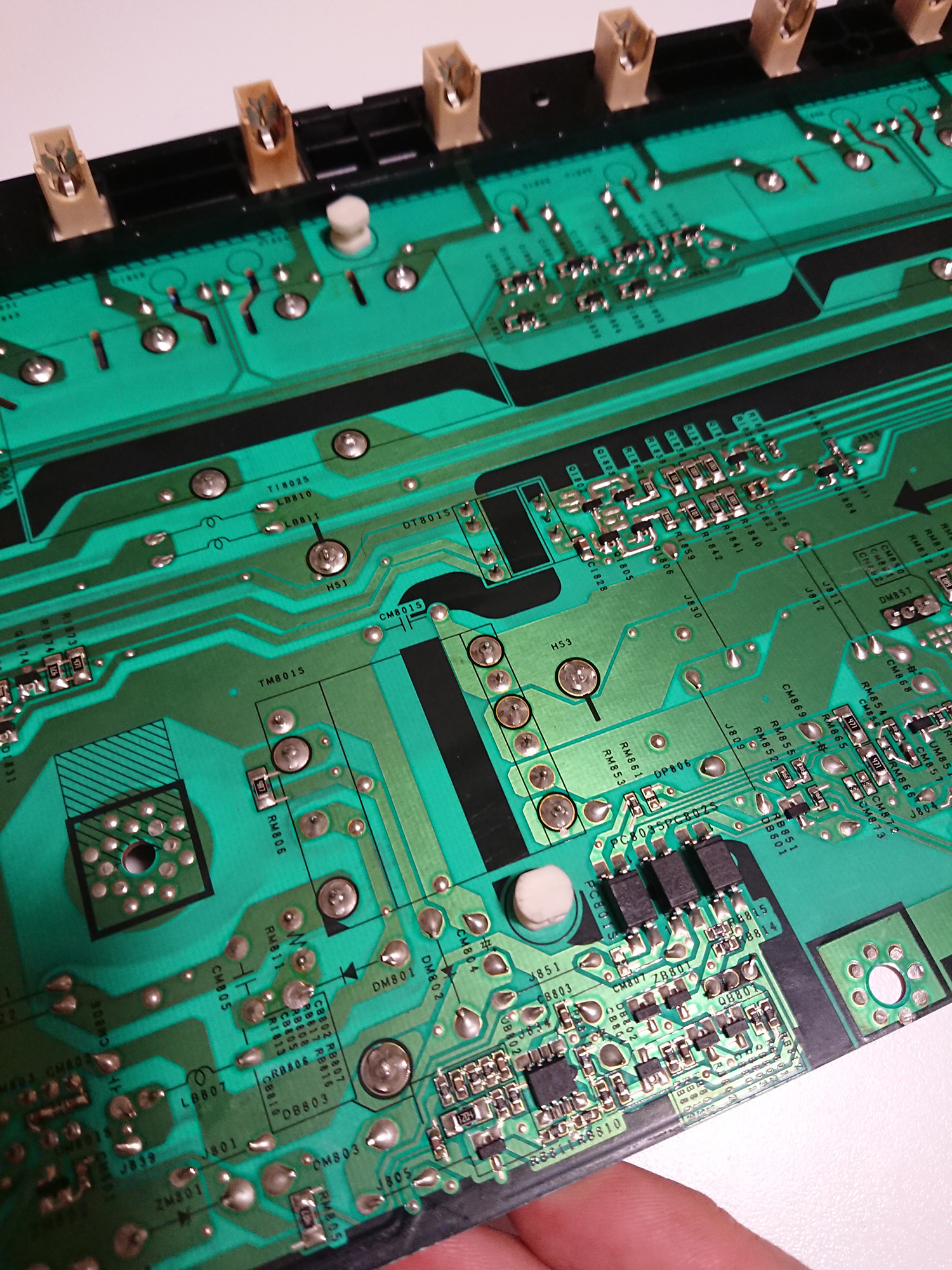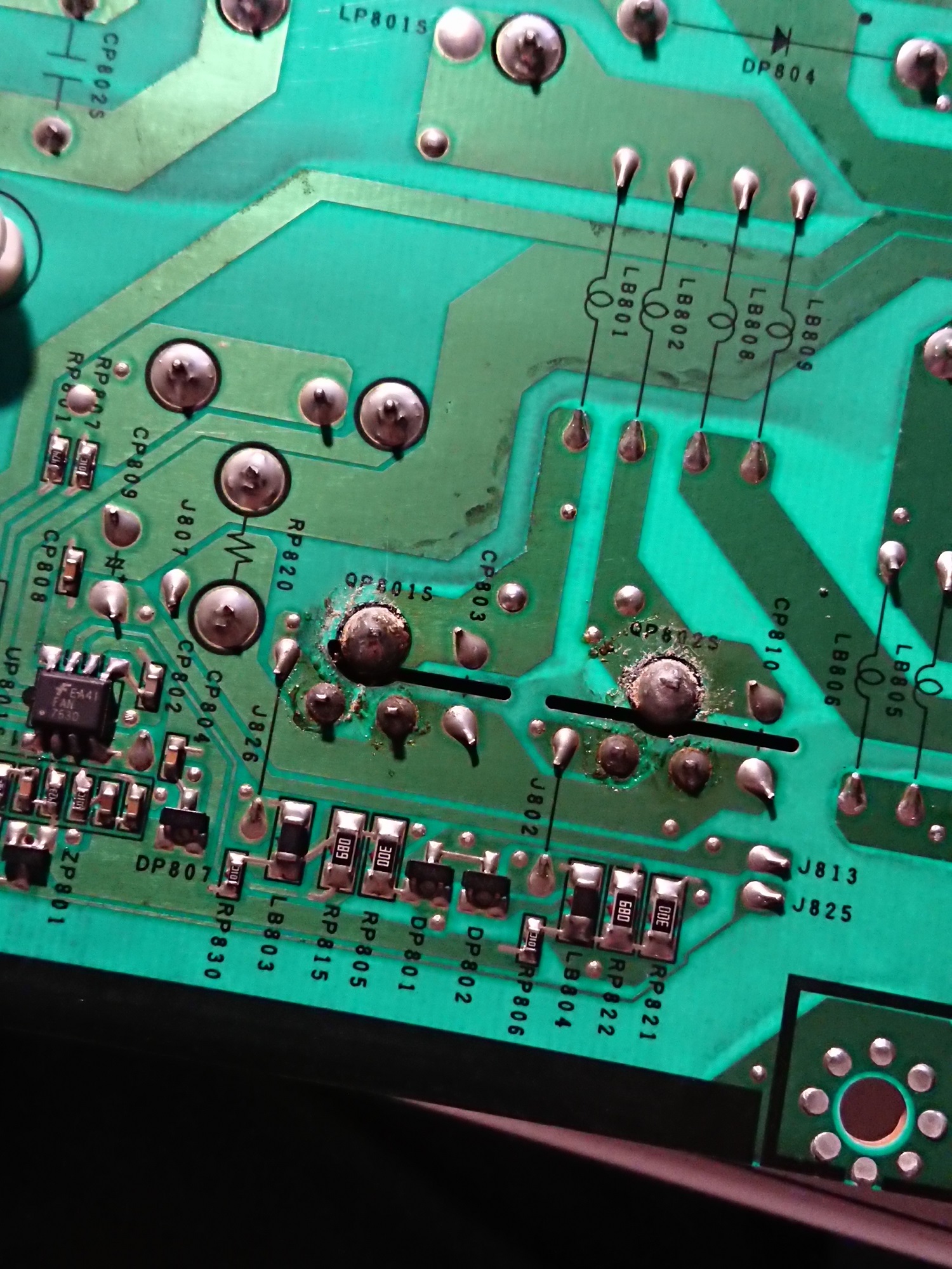 - no burning signs but some rust on QP801S and 802S solder joints, I think they still make contact, maybe I can test them if you tell me what to measure (see the image).