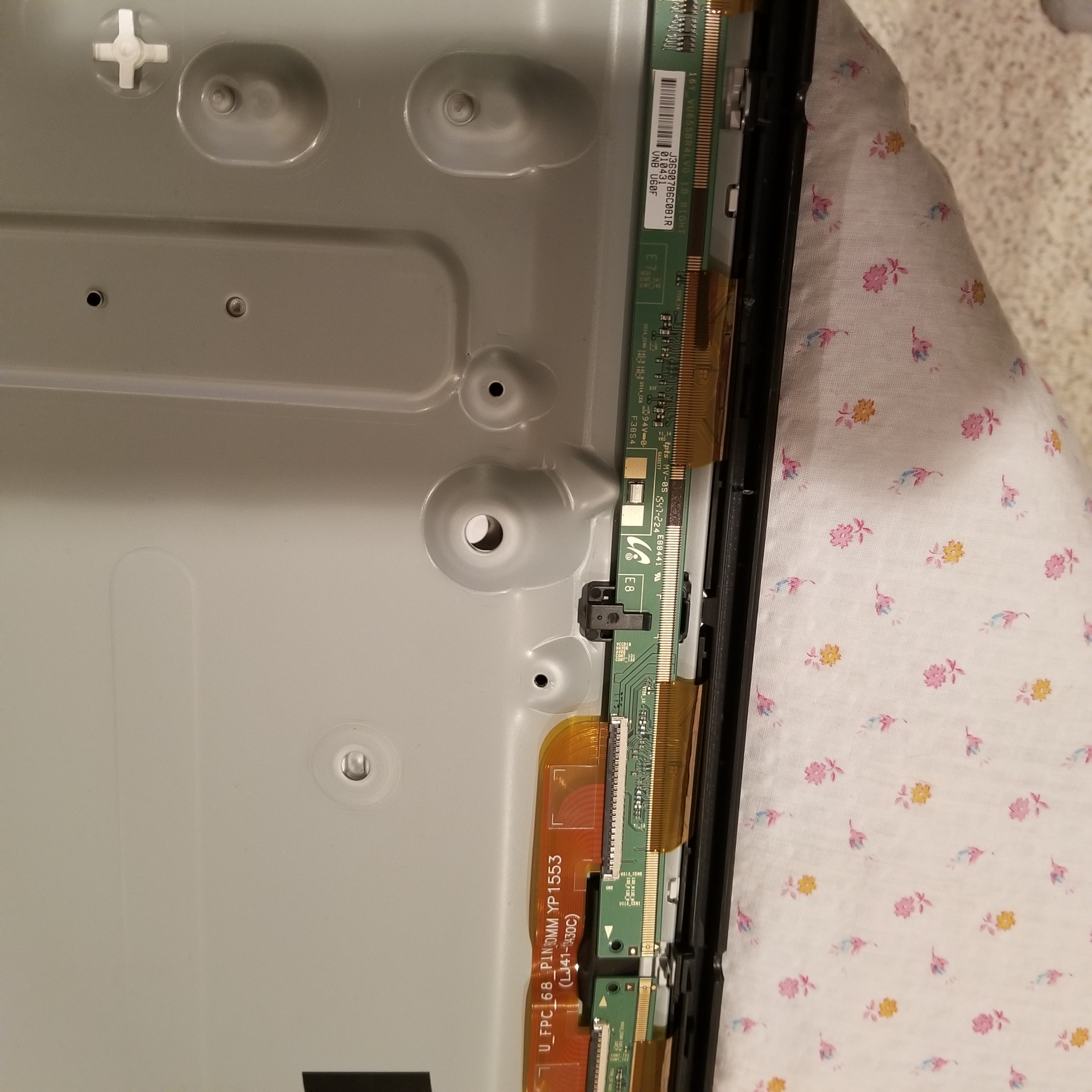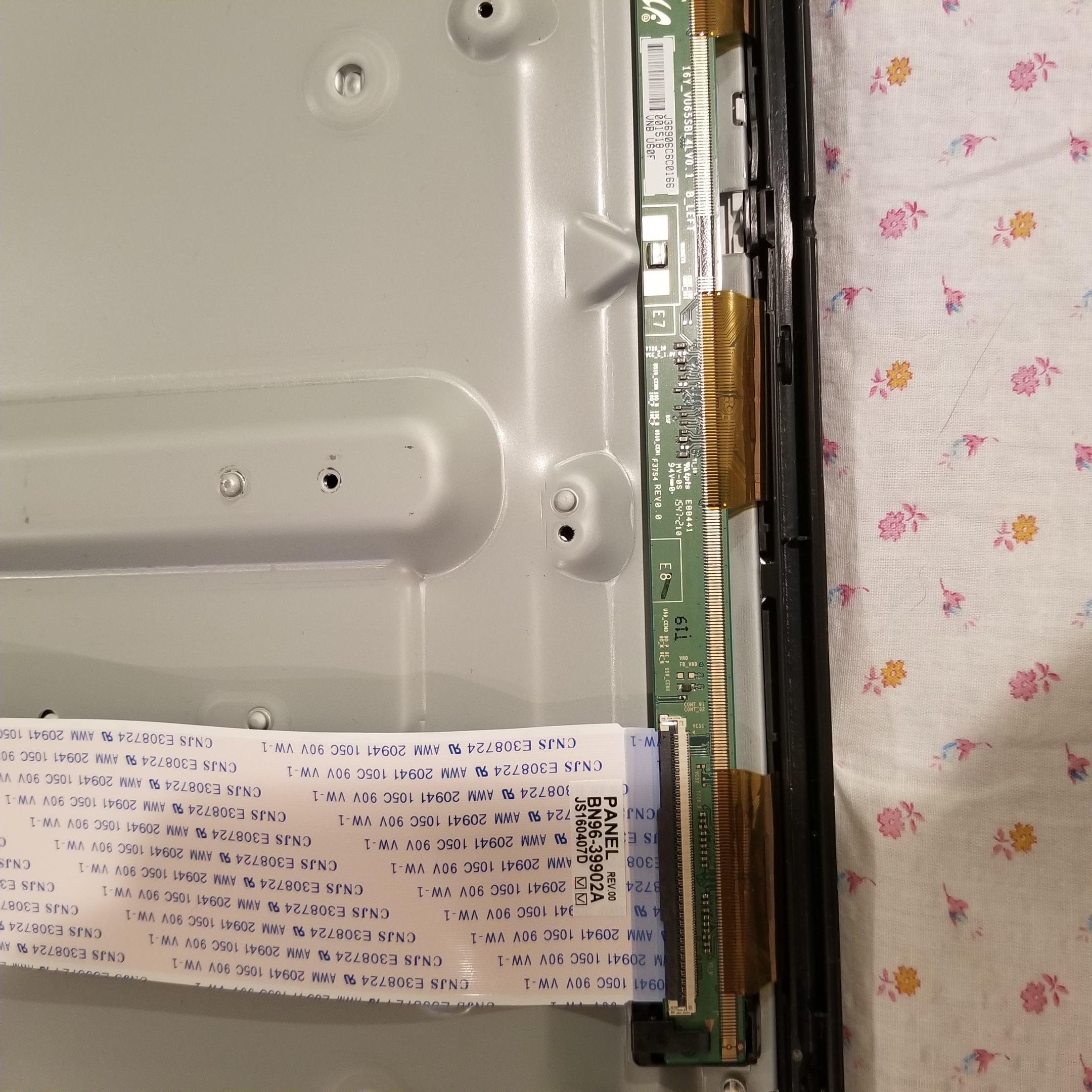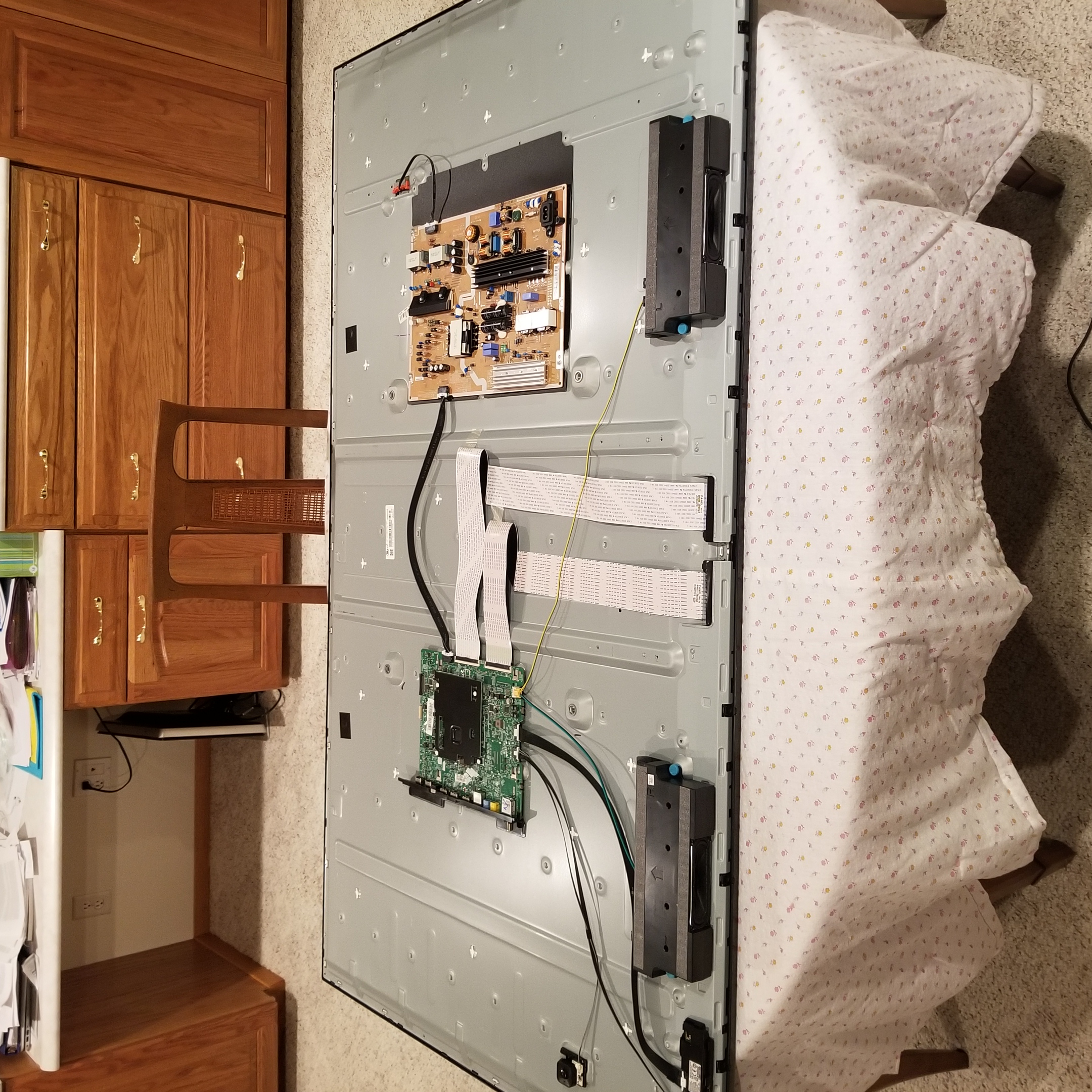 Good day everyone! I'm looking for some help/advice/direction with this Samsung UN65KU6300FXZA with no picture. When powered on the backlights come on for a couple of seconds then dim down for a couple of seconds then it powers off, powers back on and repeats the same process over and over again and there is never any logo or anything just a bluish screen and the only way to shut it off is to unplug it. when I disconnect the plug connecting the power supply to the main board the backlights come on and stay on, when I disconnect the ribbons on the main board one at a time it doesn't change the screen at all, I've always gotten a white half screen on the side that was disconnected with other tv's I've worked on. Is this a bad panel? I know there have been EEprom issues with these tv's!?!? Advice?