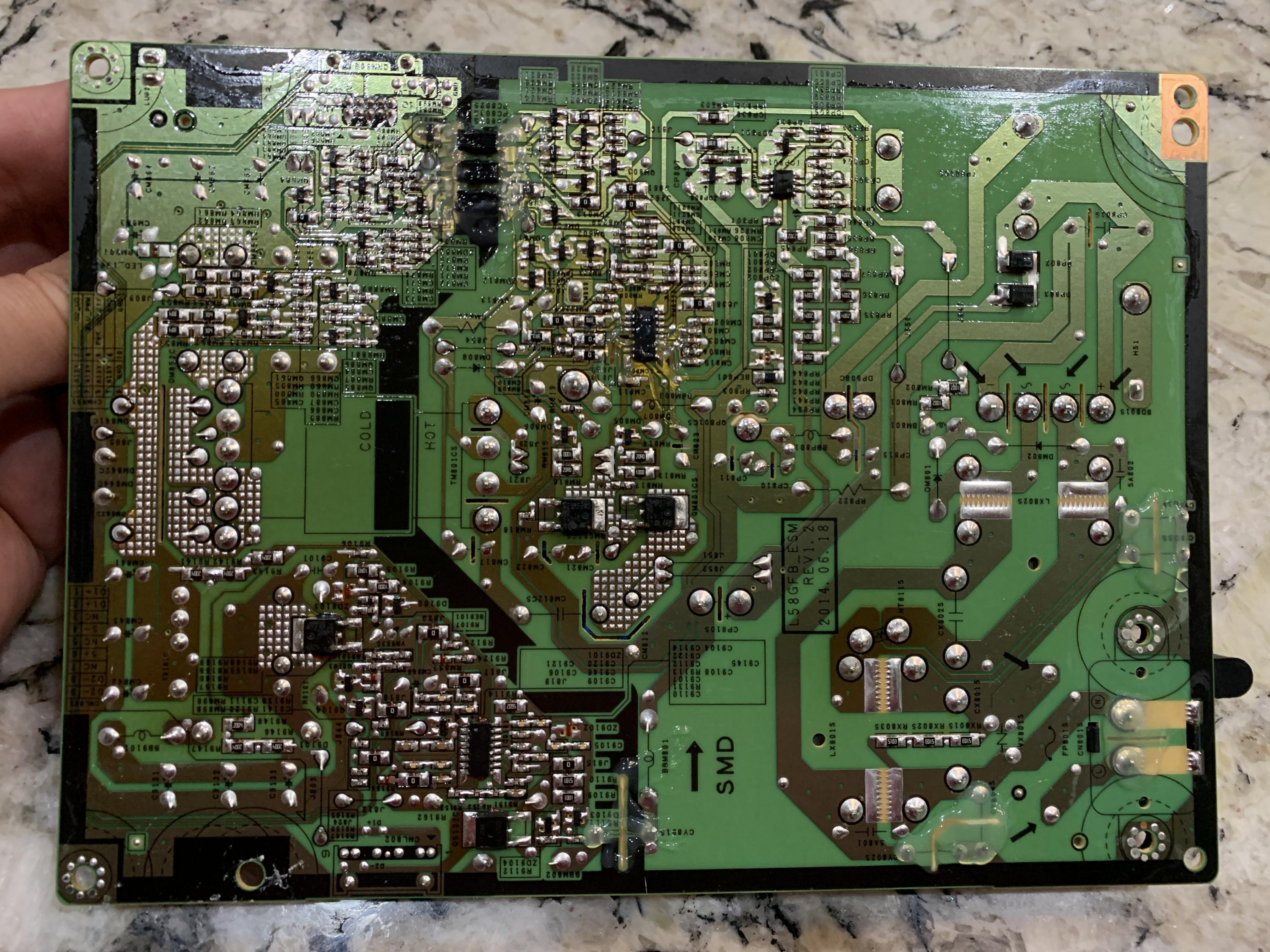 Also research says that model has a high LED failure rate, so am guessing that is what has caused the PS failure. So after I solve the PS problem, I will have to chase the LED problem. I would like to do a board level repair of the PS if possible, since I'll then have to invest in LED strips.