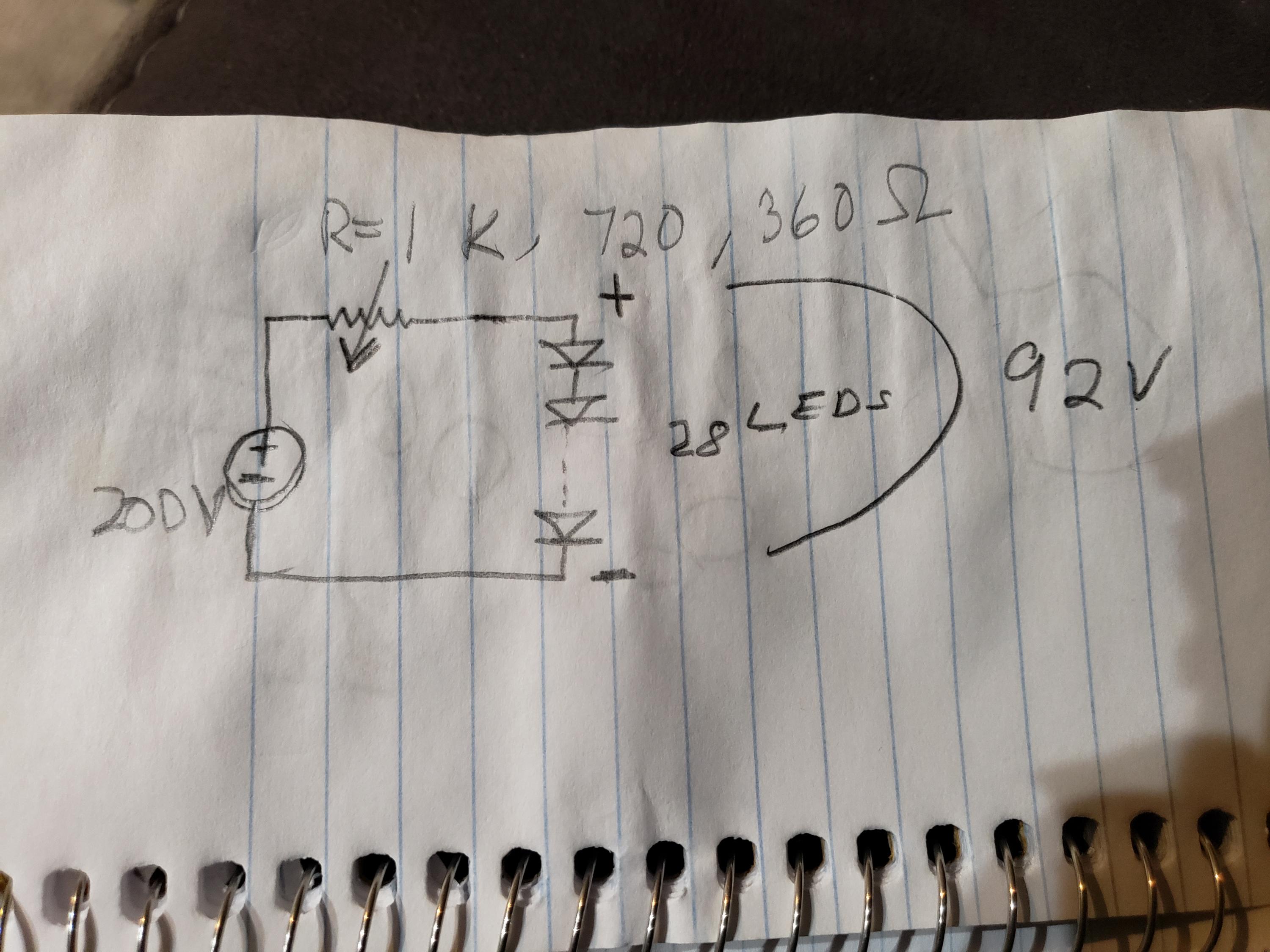 I was testing a string at a time (200 V - 3V*28 = 116V across)