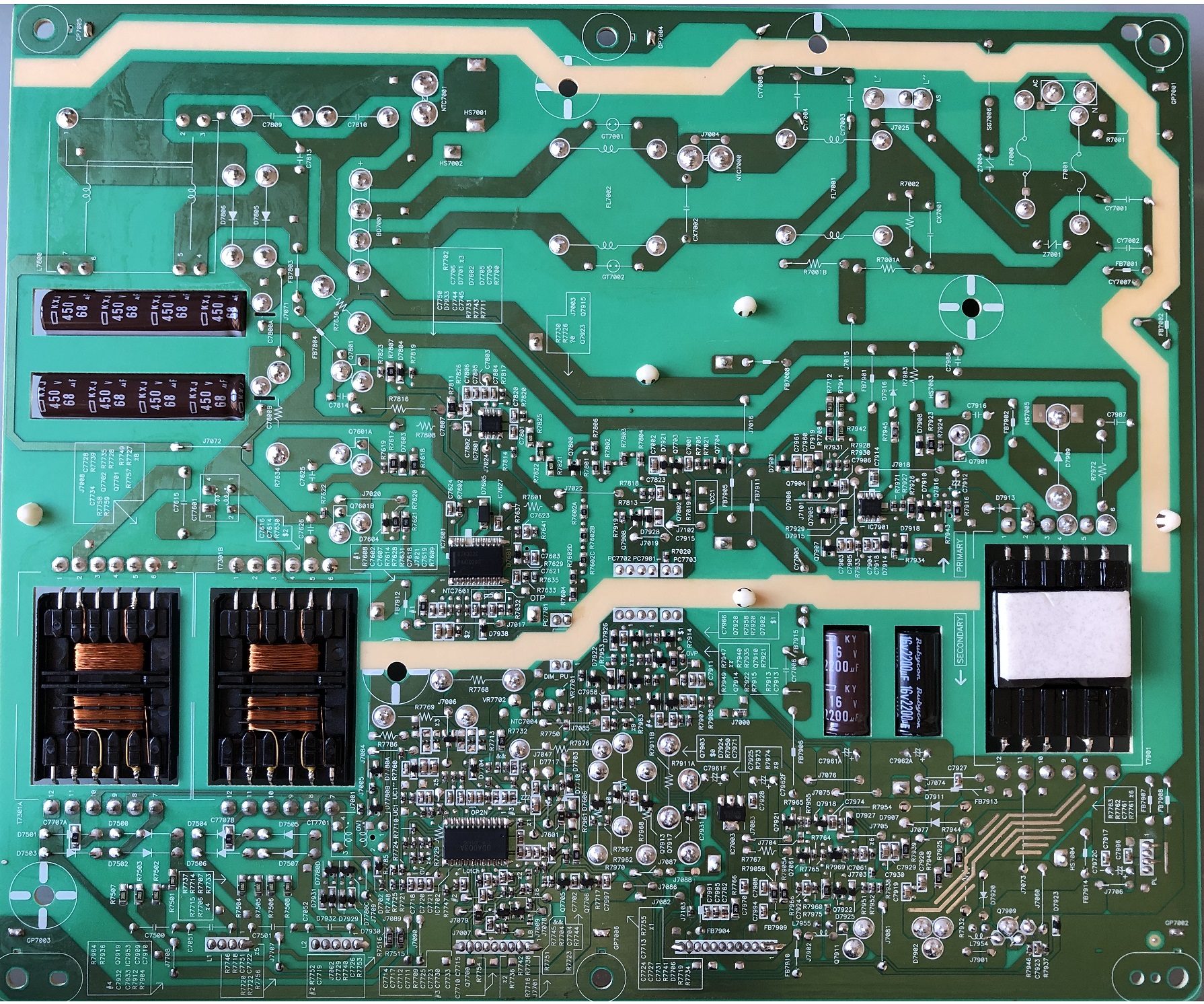 I attach 5 pictures : Power card (face & back), focus on optos (face & back) and focus on PD connector if needed