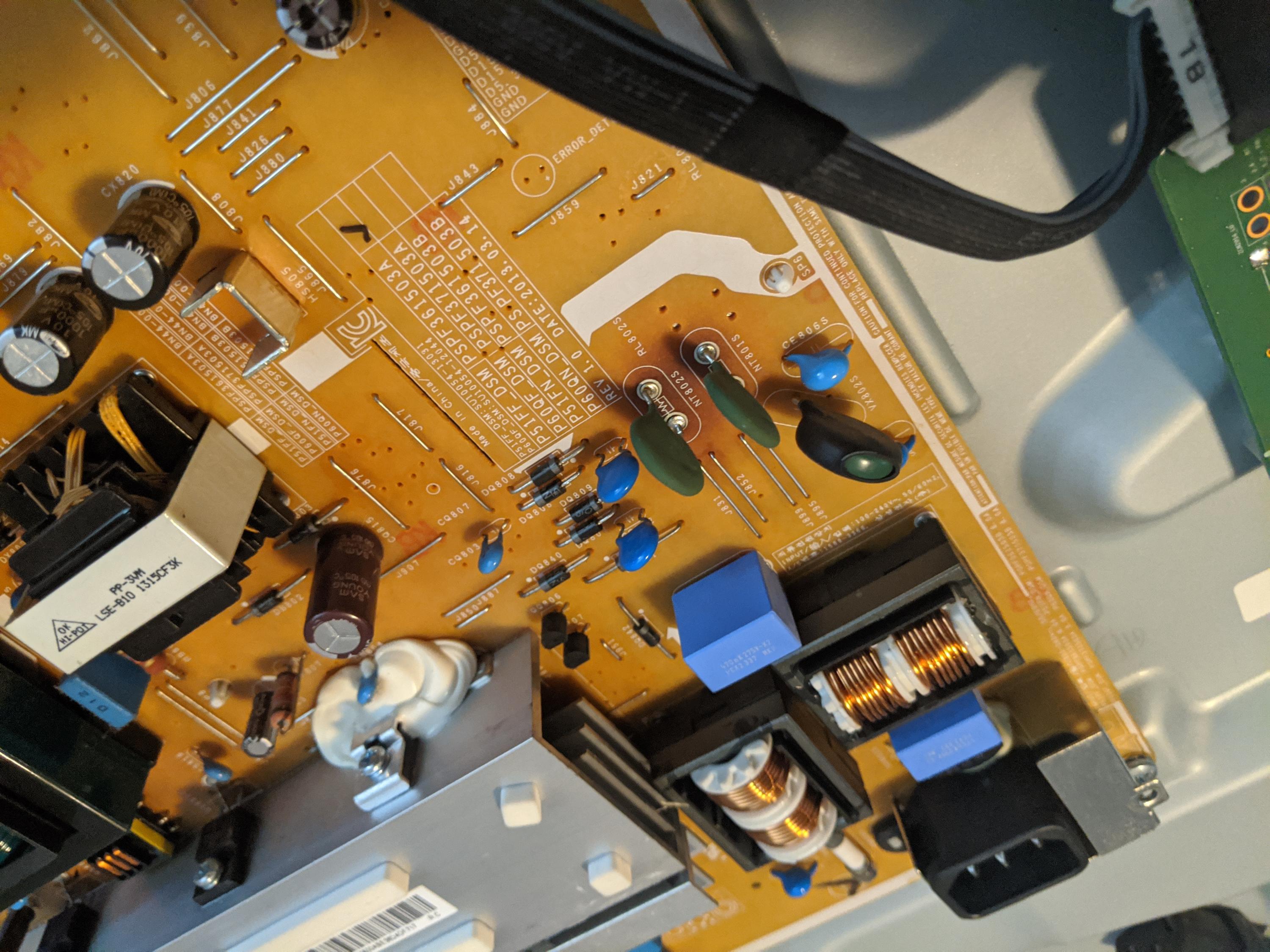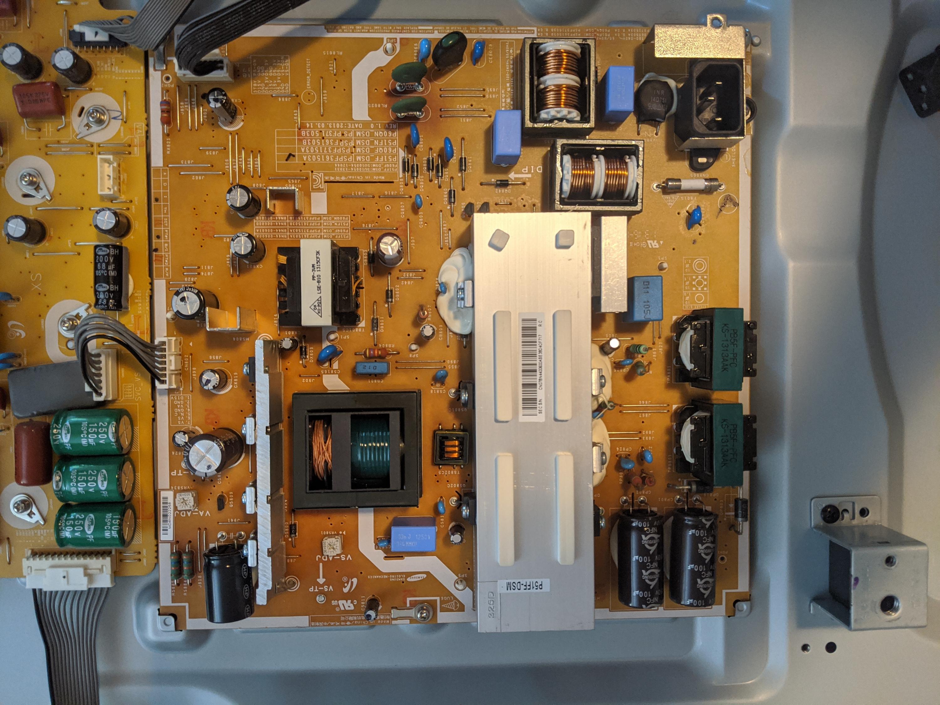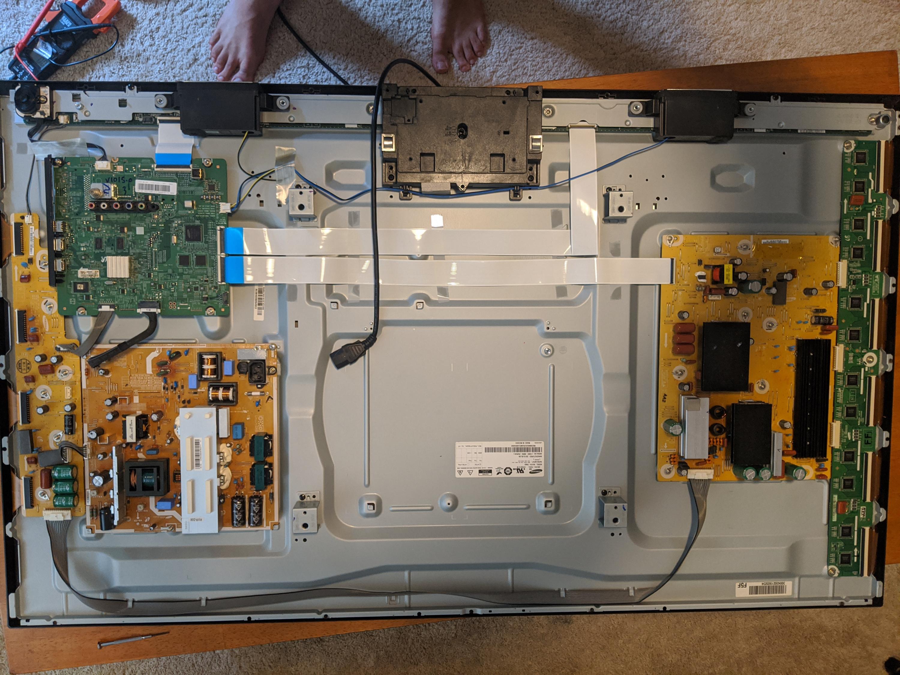Initial investigation: Remove back from Plasma TV, armed with DMM.