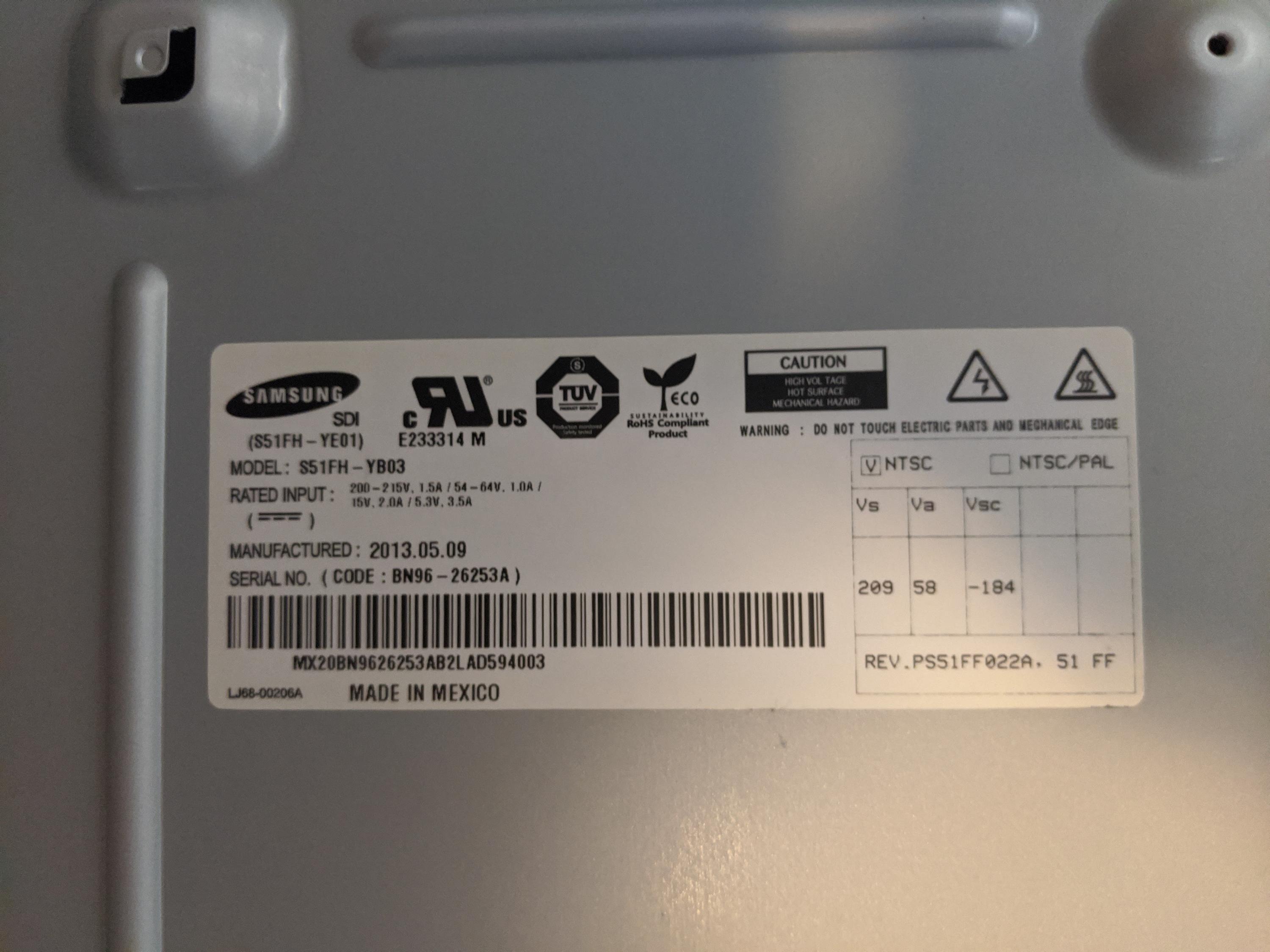 Product: Samsung Plasma TV (PN51F5300)