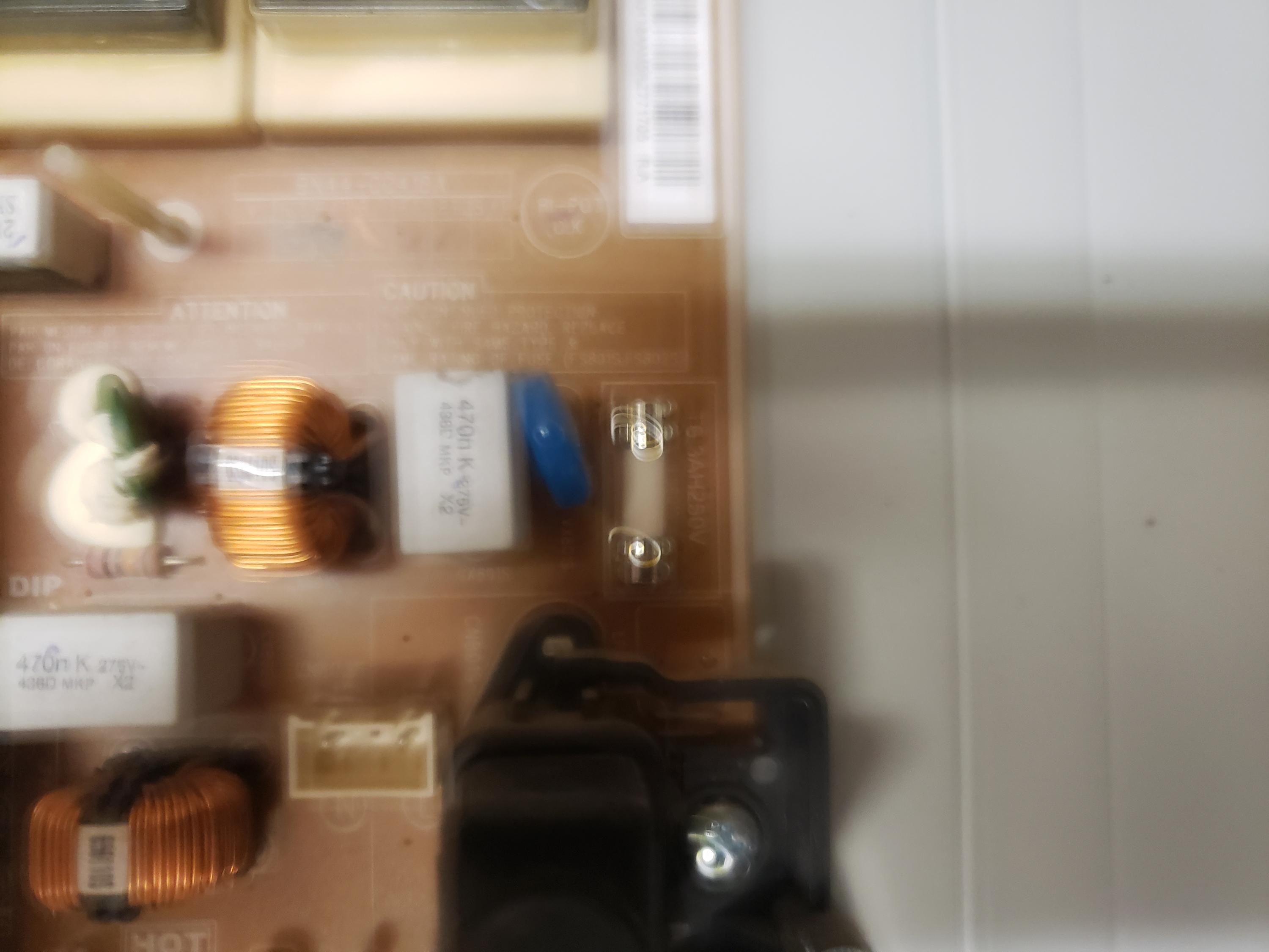 Hello. I have a Samsung set that a customer says went out during a power outage or surge. From a visual inspection I see a burn mark on one of the transformers (pics included). Also, when I replace the pictured fuse (the one by the power plug connector) it blows immediately when I plug in the set. Could the transformer be the issue why the fuse immediately blows or could it be something else. I'd greatly appreciate any help. Thanks in advance.