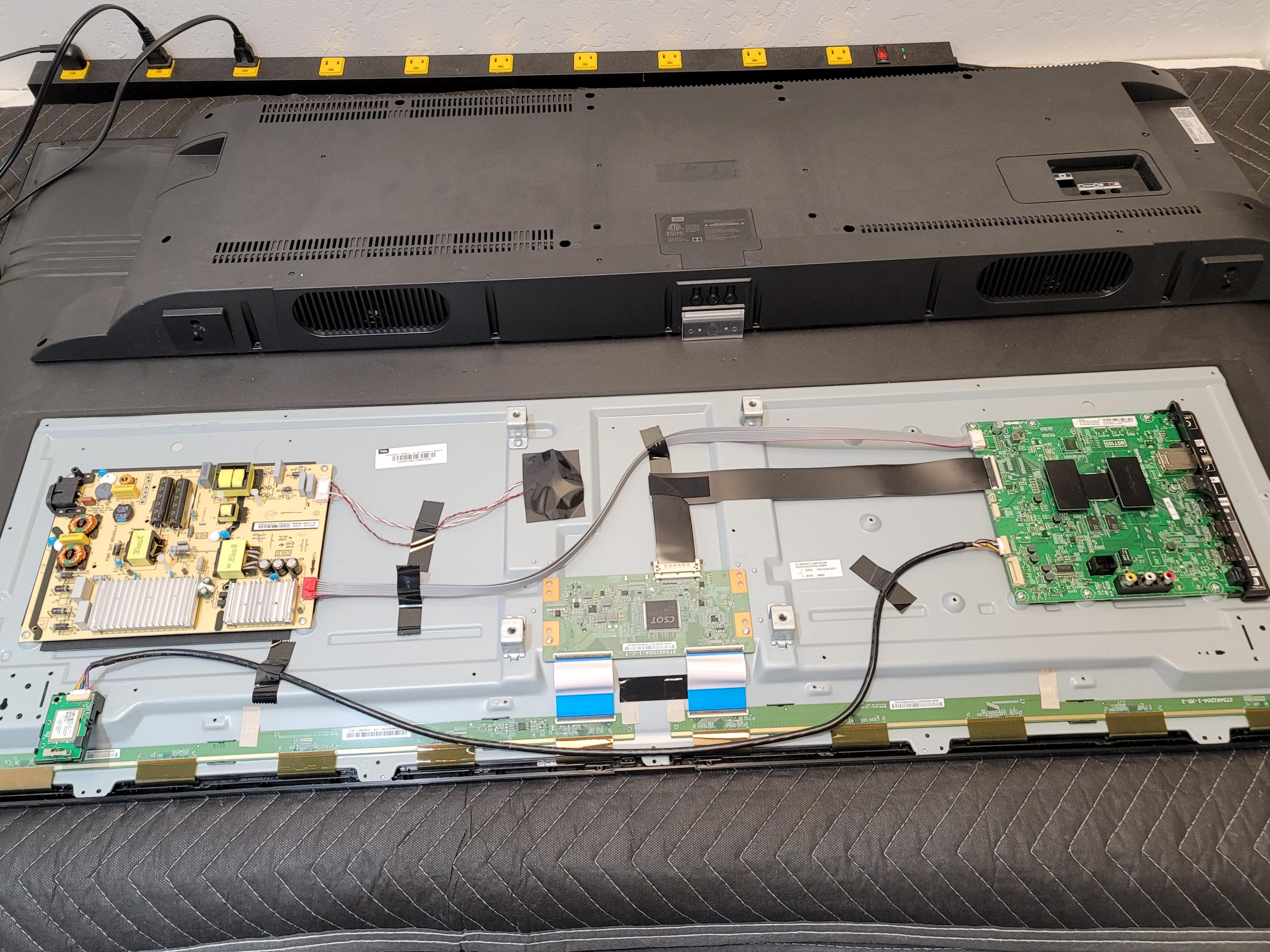 I have a 55" 55S403 that turns on, produces sound and backlight but no picture. Tested voltages on the T-con and mainboard and voltage is present. Honestly, don't exactly know what voltages to look for but we know it at least has voltage present.