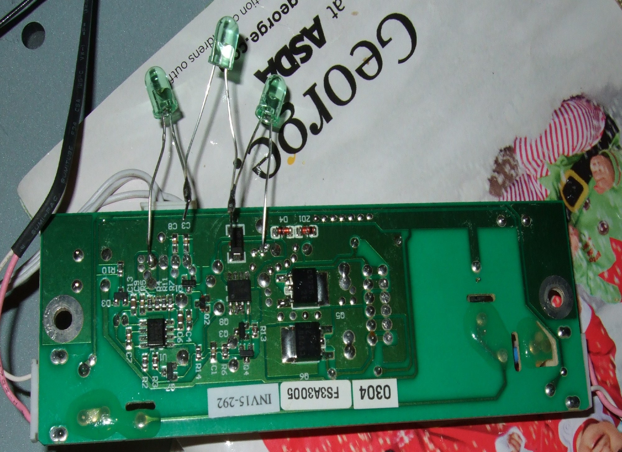 My problem with this tv is that the back light is bright on the left side and dimmer on the right side when you are facing the screen. Using one LED the screen is bright but the LED burns out. Using two LEDS the screen is dimmer on the right but the LED don't burns out (using 30 mins on test) using 3 leds the screen is dimmer on the right and the LEDs don't burn out.