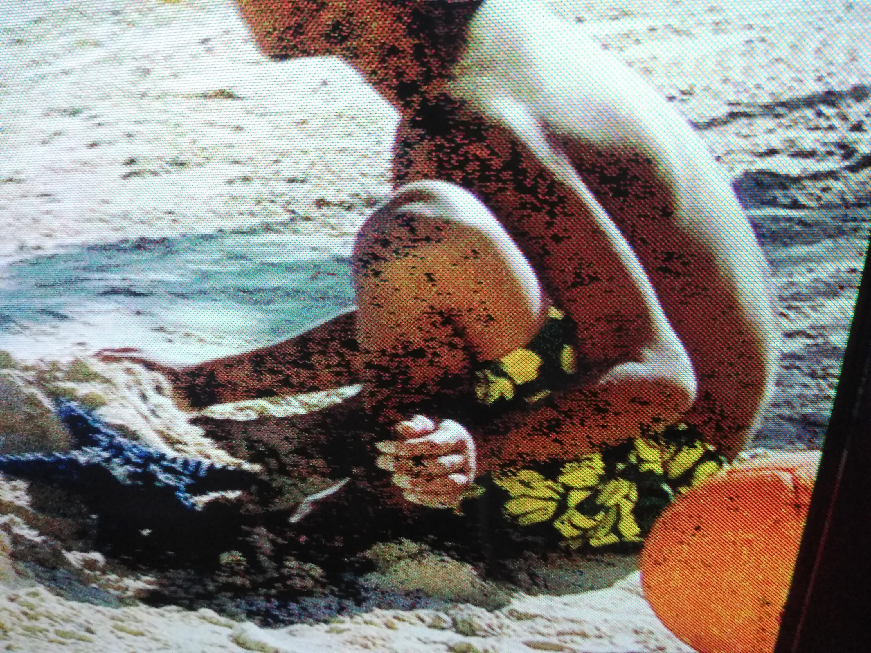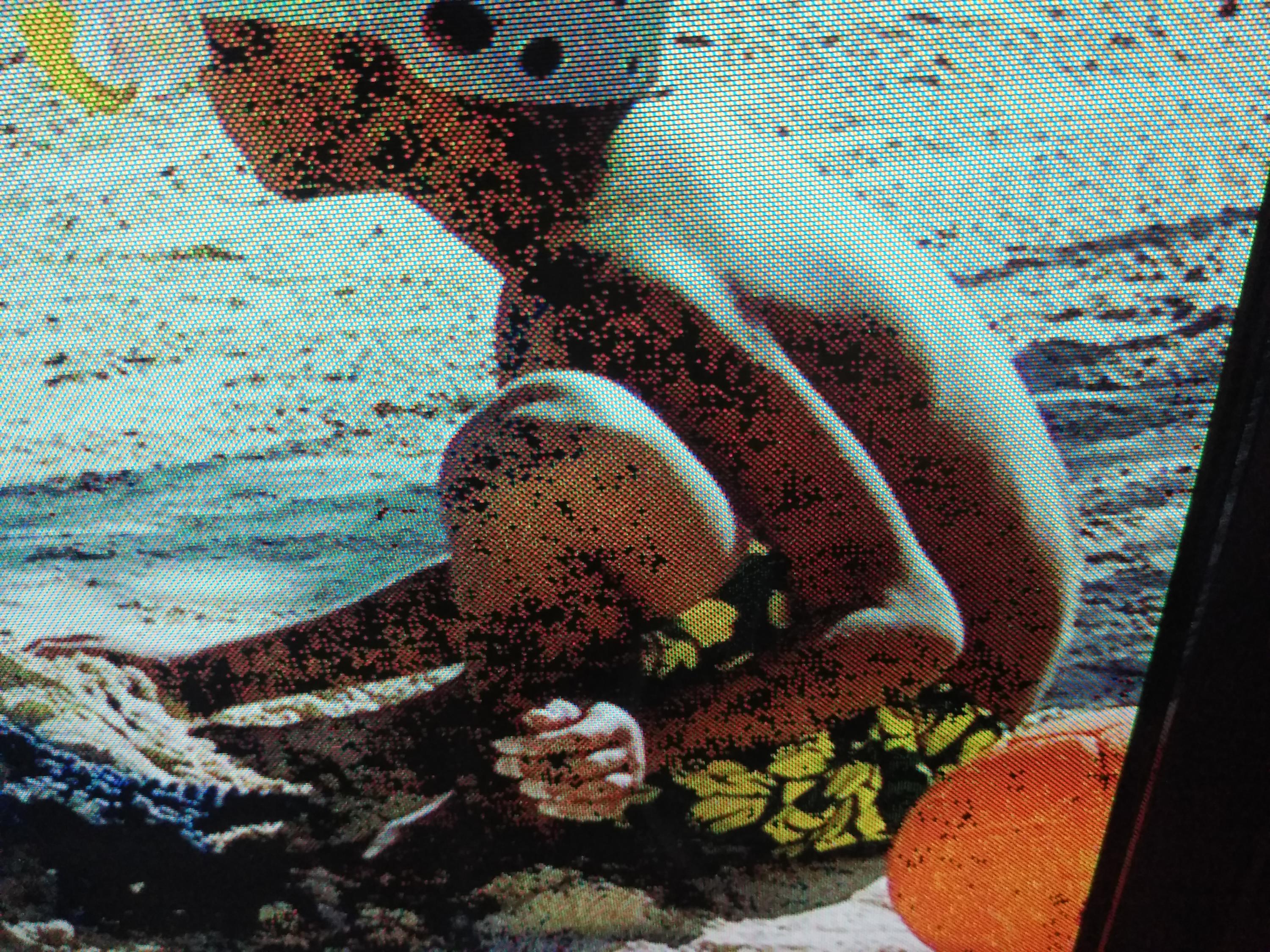 I tried getting a pic of the issue but it starts to go mostly away after a minute of turning on. The spots in the picture cover the entire screen upon initial power on.