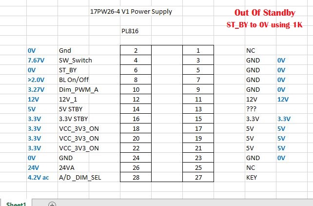 Pin1,3,4,5(Vamp),7(Vamp)- 12.6V; Pin2(PWM_DIM)- 0.06v; Pin6(BLU_ON/OFF)-...