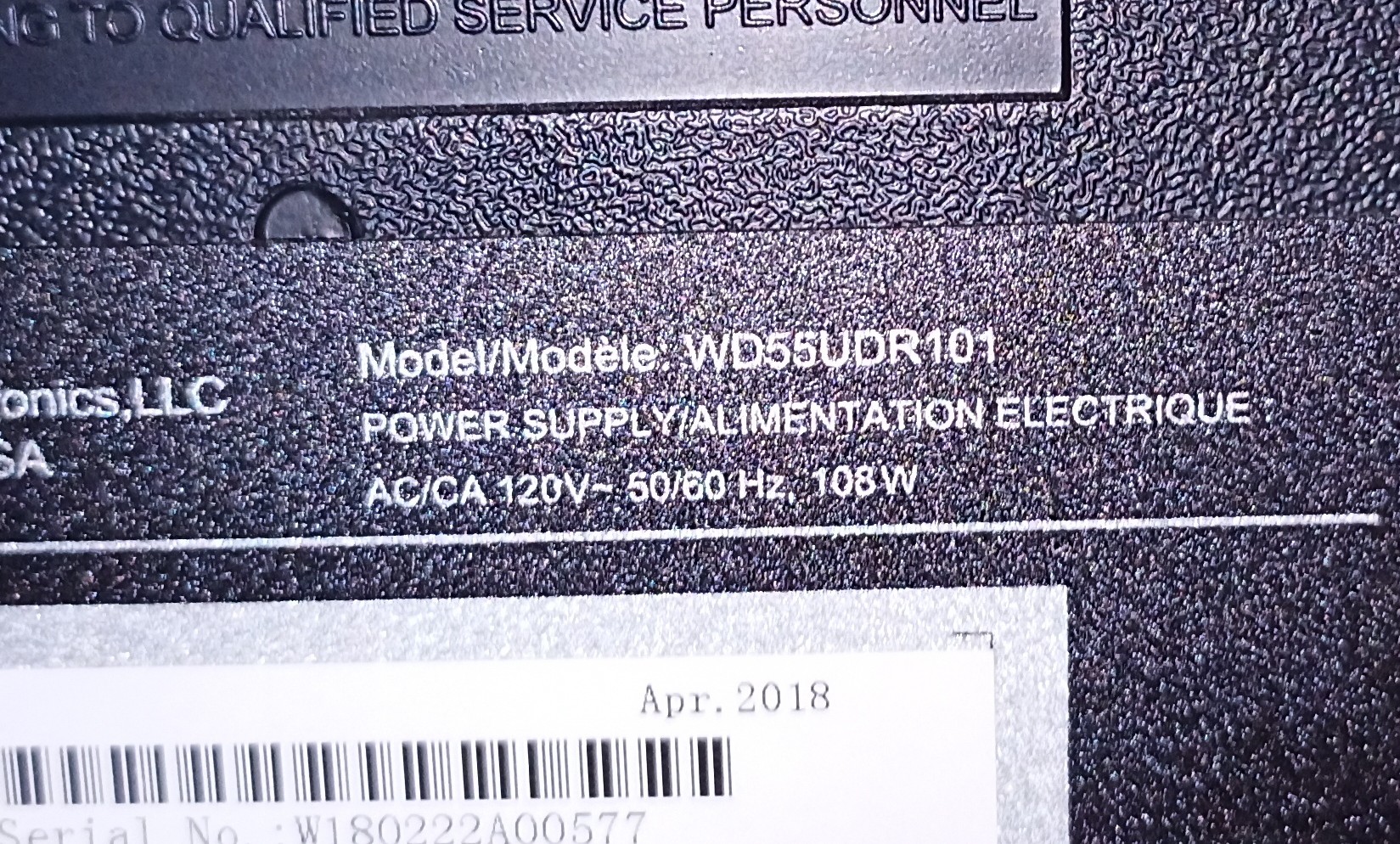 Model WD55UDR101. I believe this was sold at Canadian Tire here in Canada.