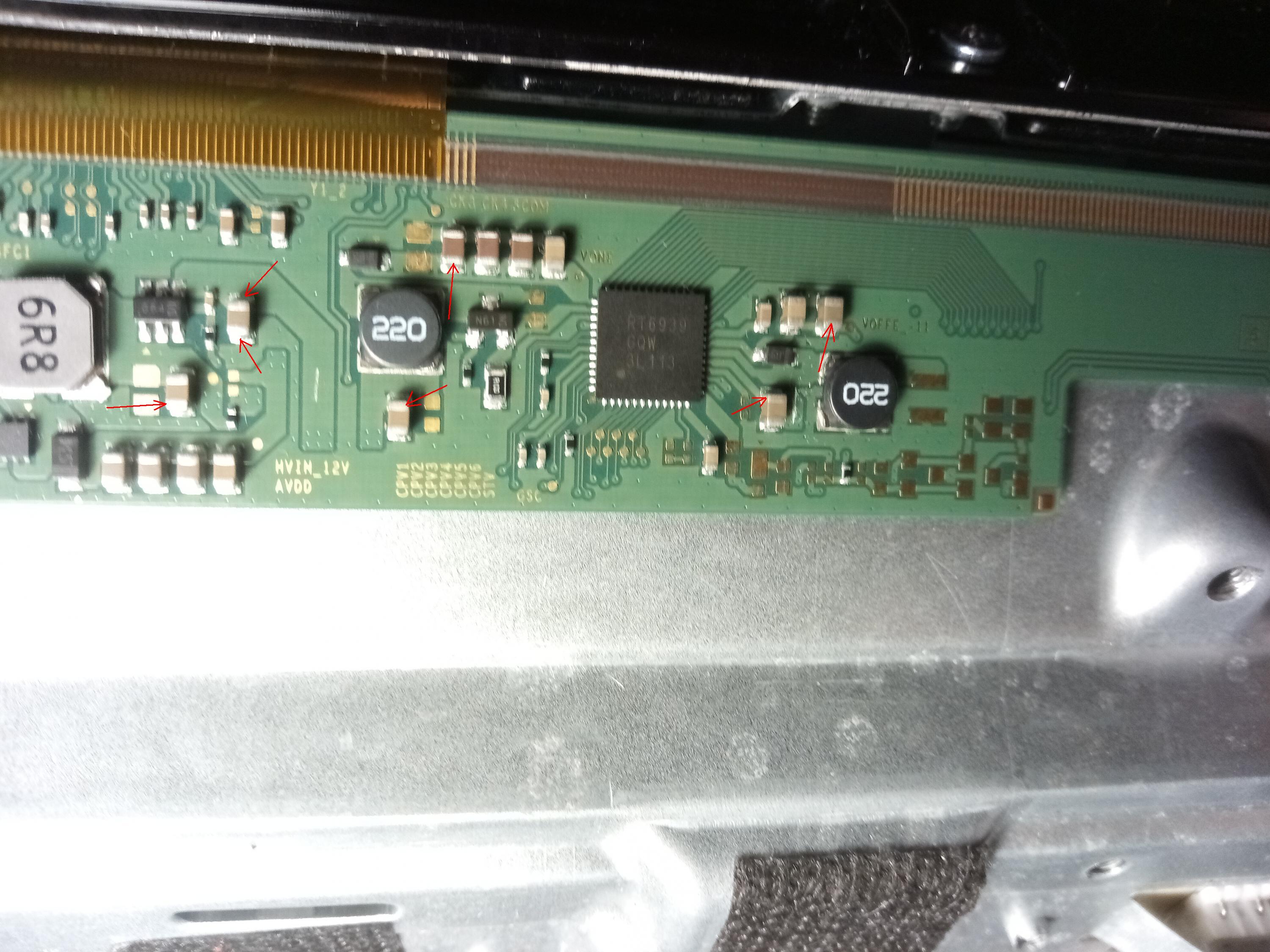 thanks ,ive removed caps to test on cap meter@jimbofz I've got same problem on a different TV set, Toshiba, same Vestel integrated tcon sh@t. I found one cap straight connected to 6935 which was shorted, replacing it didn't made any difference. problem is, there is no way to find values for them as there is no markings on. Actually somebody suggested the problem might be on the actual logic board as, at least in my case, the interaction with the remote is limited. basically I can get only power on/power off response. I've started a thread couple of days ago here, so keep in touch if we have any updates.