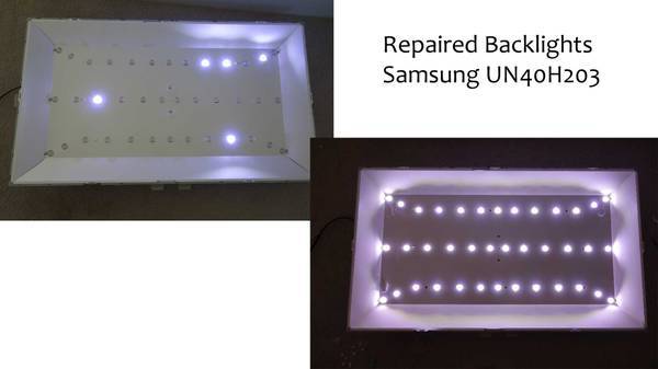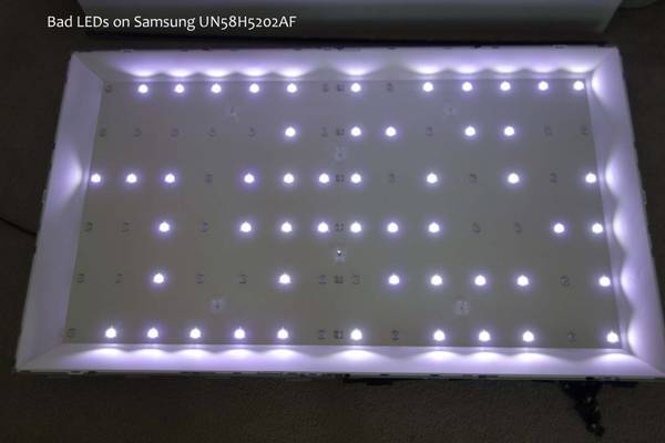 This is what your backlights will look like if you run them at max. Both of these examples are Samsungs from H model year. The bad leds on the 58 inch damages the power supply preventing more leds from failing.