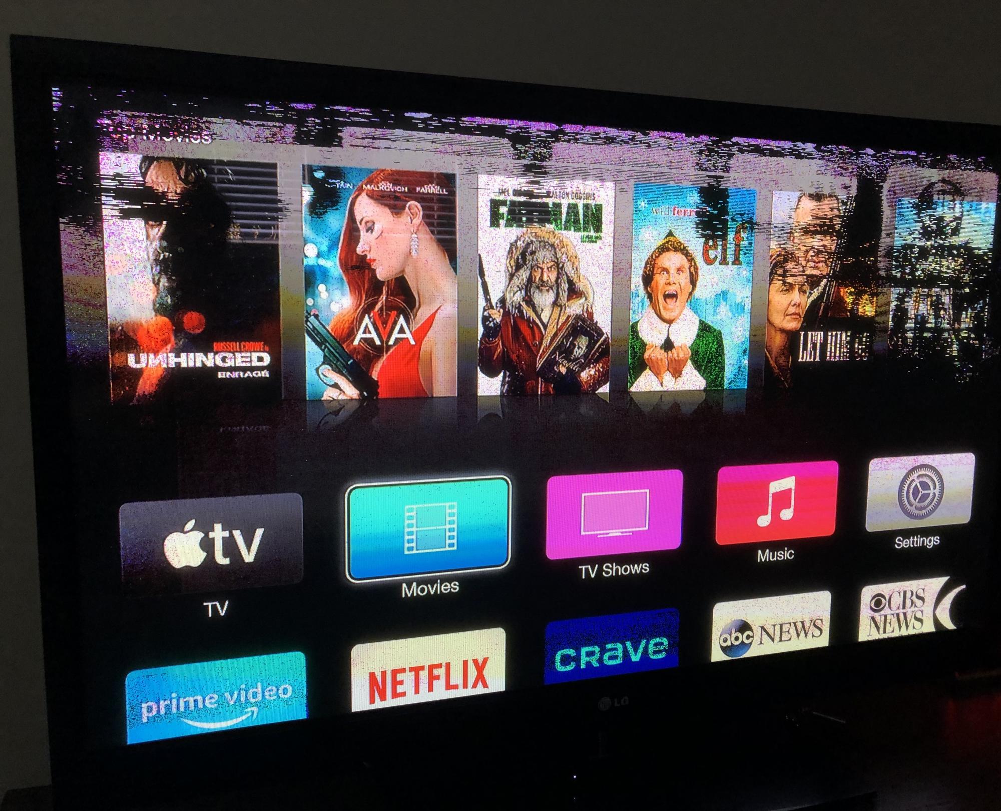 When it was working, it would occasionally act up on the loading screen but I just thought the Apple TV box wasn't playing well with the old TV. However, now it is like this all the time even without anything plugged in.