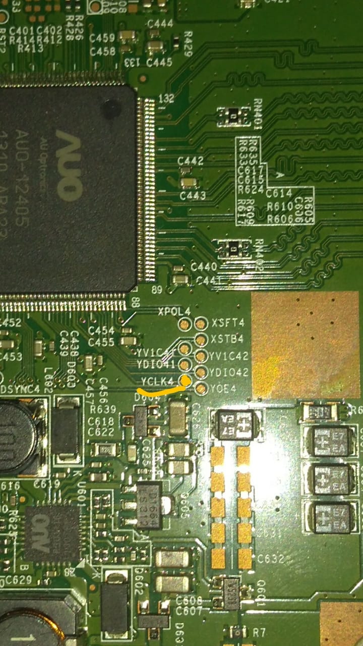 by rimwallThis TV was showing a fine image and pulsing with a partial double image (offset vertically) every few seconds. I taped 8 clock pins on one ribbon cable from the Tcon to the panel. It stopped the double image, but some pulsing in intensity was still visible. I then taped another 8 clock pins on the same ribbon cable and the image is now ‘fixed’. Although I understand this results in some loss of resolution, presumably because the clock signal degrades as it passes horizontally across the screen.