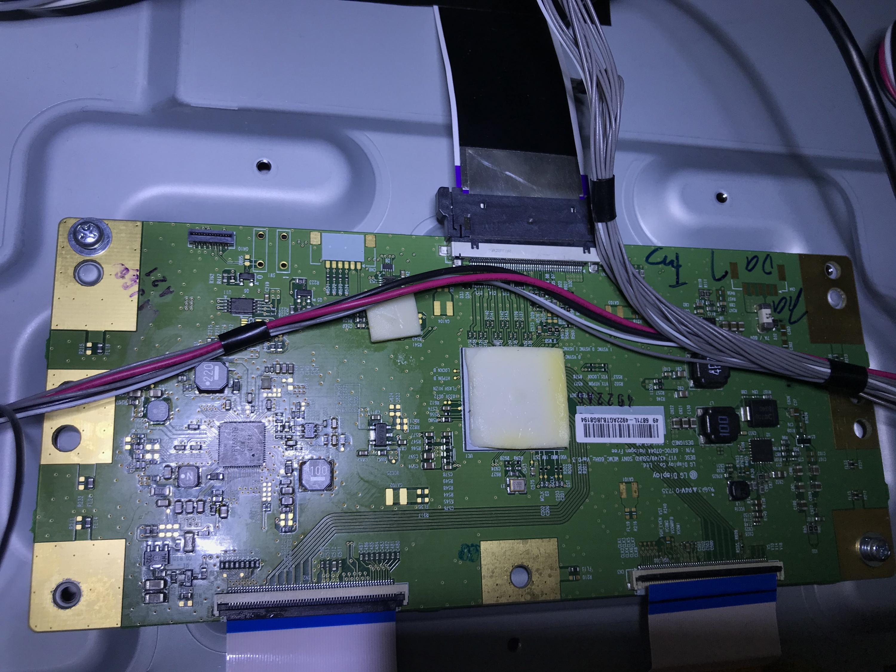 Powering off the TV and back on immediately "resets" the issue and it takes the obscene amount of time to start showing a picture again (the backlight functions fine). I powered it up into the self-check and came back when eventually it displayed it showing no problems.