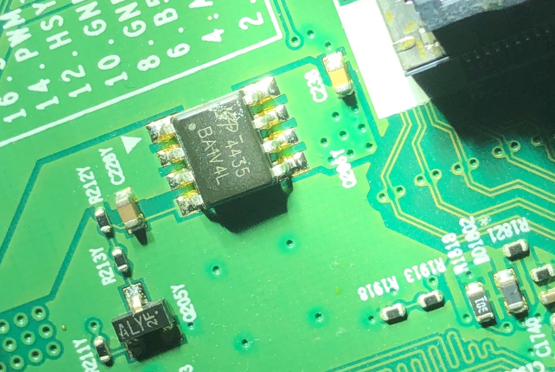 there is a mofset on the main board that has something, you can see just below and to the left of the circle identifying the SPI flash IC I have attached a close up.
