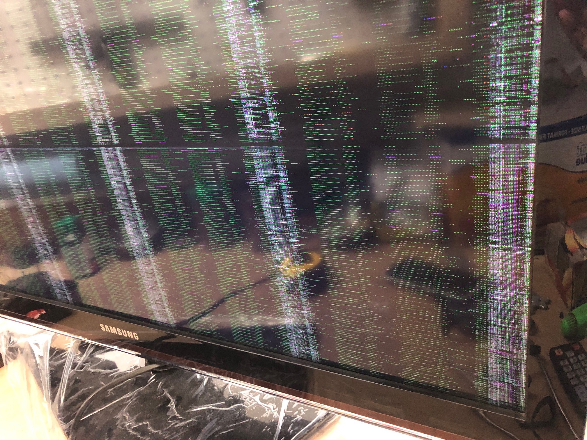 Picked up a Samsung LN40D630 LED TV, when plugging in, it will cycle on and off, LED will flash 5 times, and loud static/crackling sound comes out from the speakers, and this includes the back light cycling also, Voltages verified on the power supply board and they are all normal. attached is the main board and images I see on occasion, and they shake at the same frequency as the noise. and it is not steady for every cycle, sound changes, image like in picture iis there, sometimes no image, and even came back to almost normal at one point. also note that there is no reaction to the controls (power volume etc) as soon as I pug it in after 10 seconds or so it will power up. I am suspecting a bad connection or component but unable to pinpoint where. Any Ideas on where to look, or to help isolate?