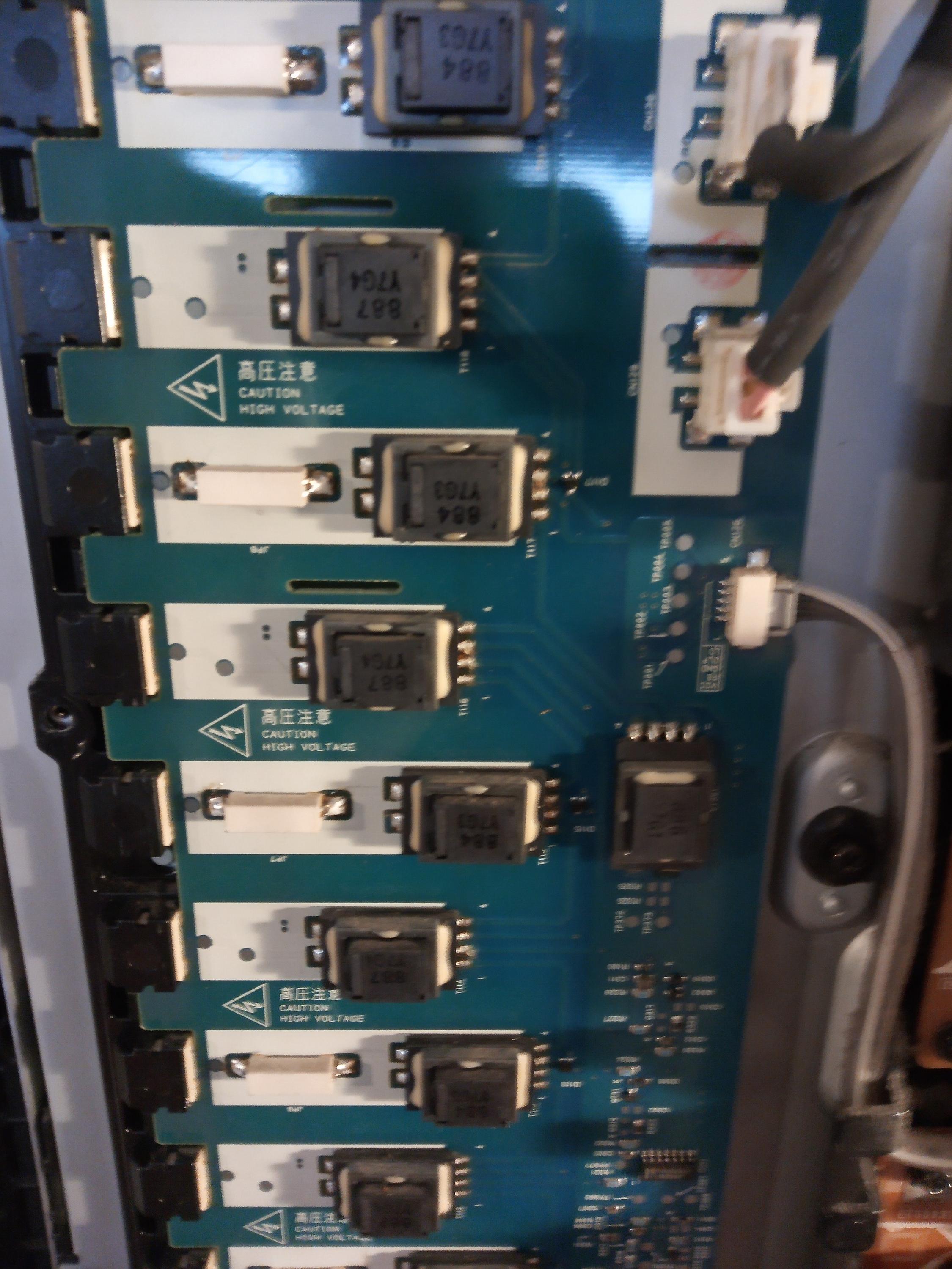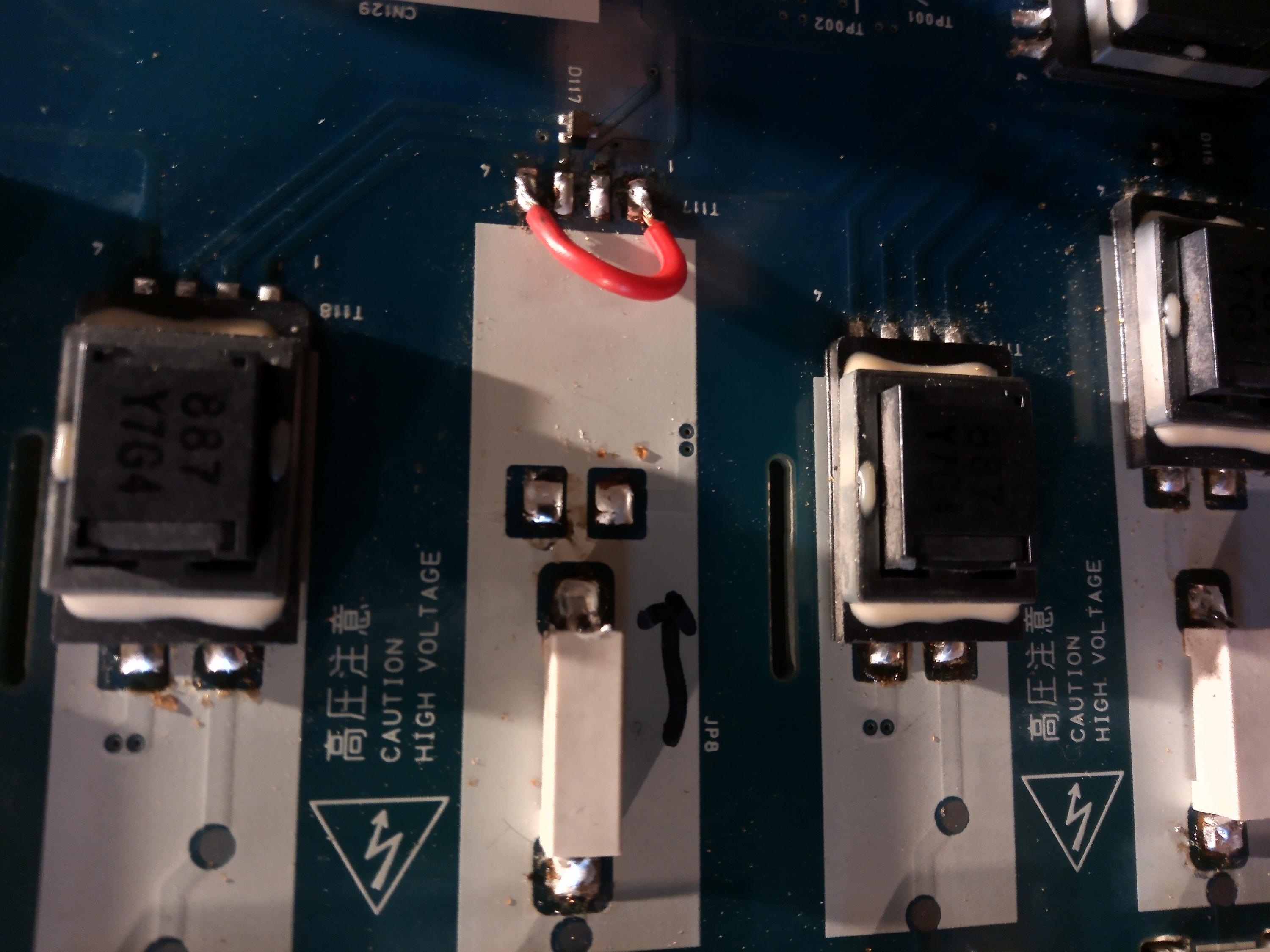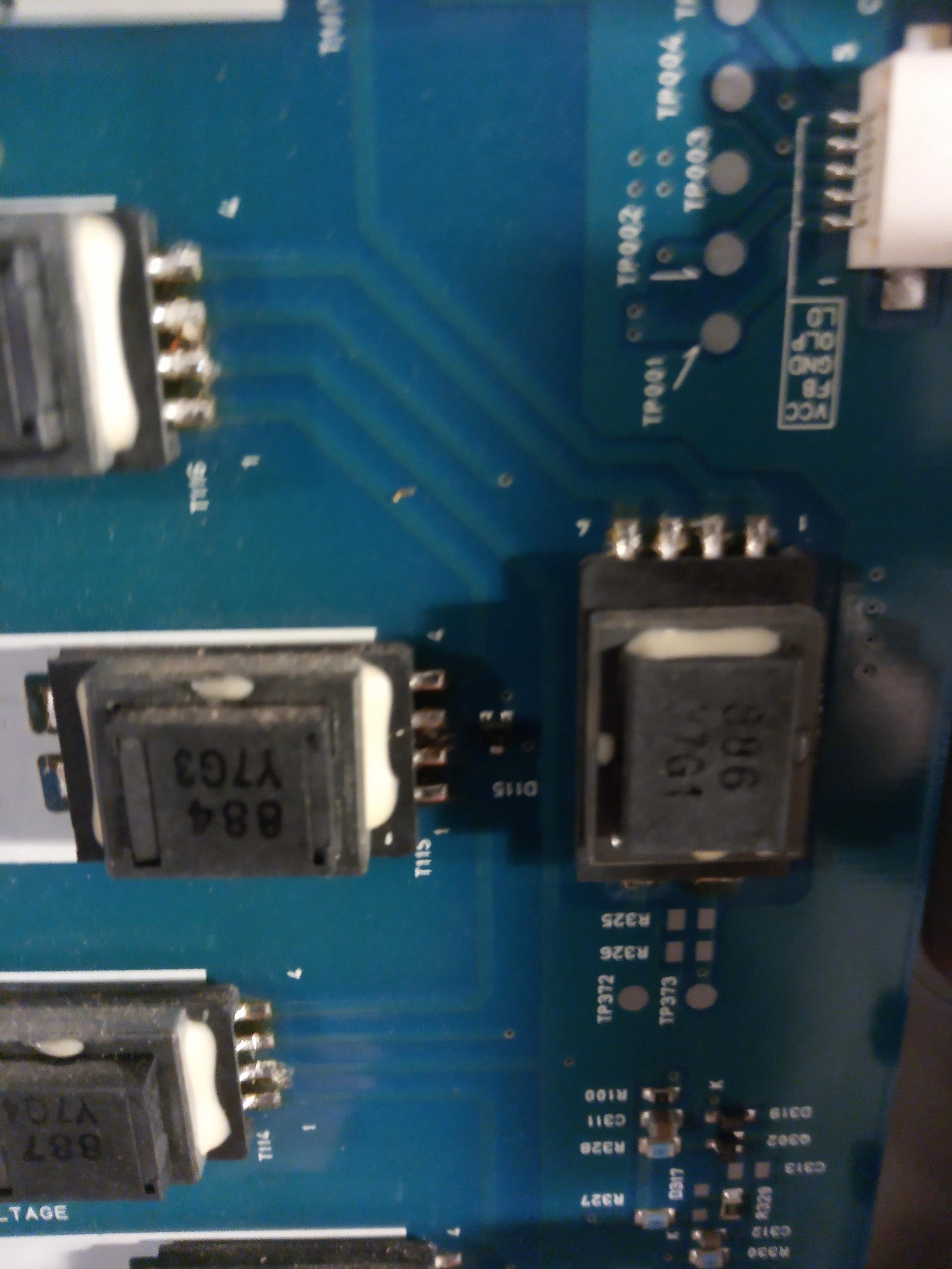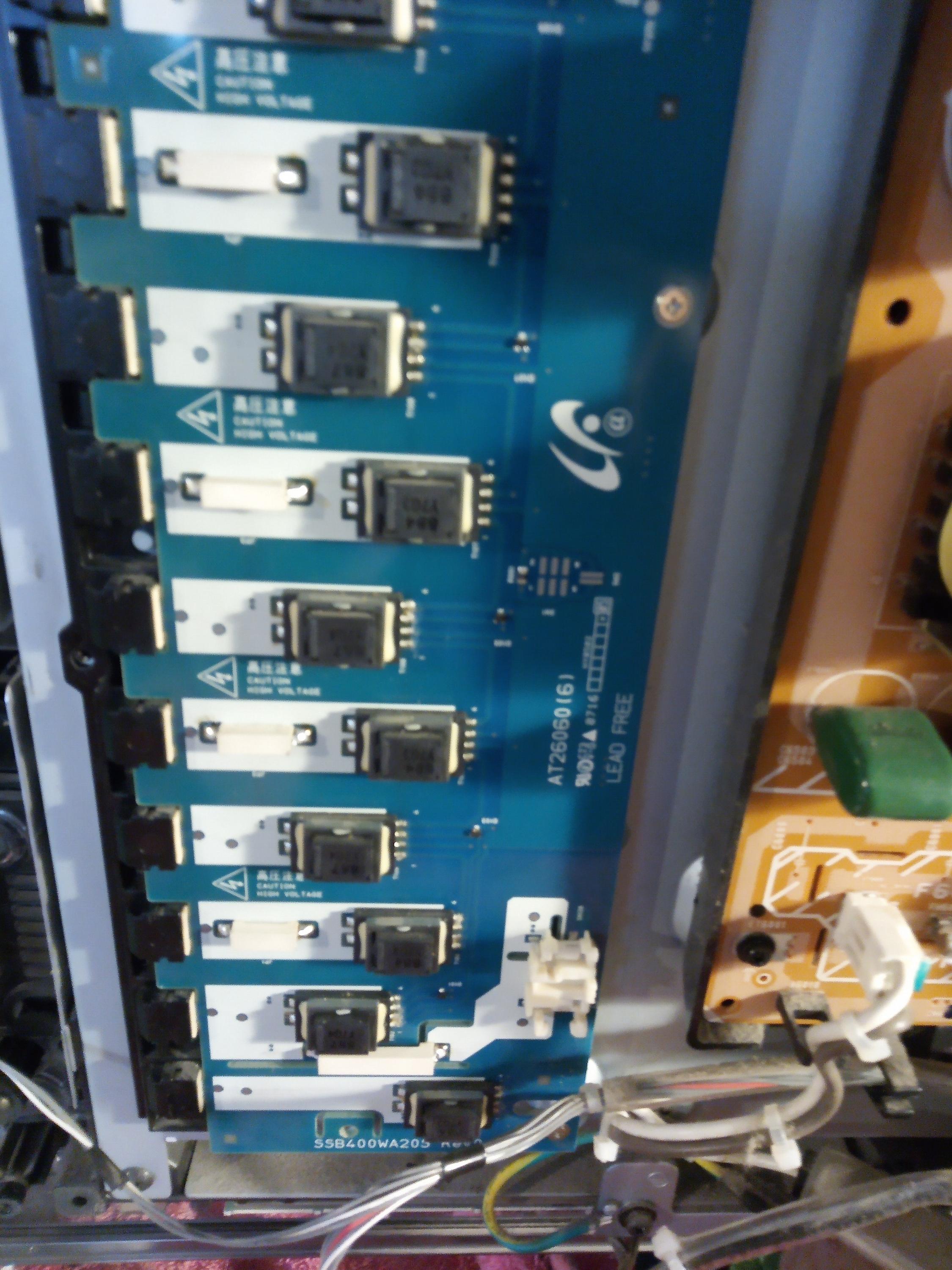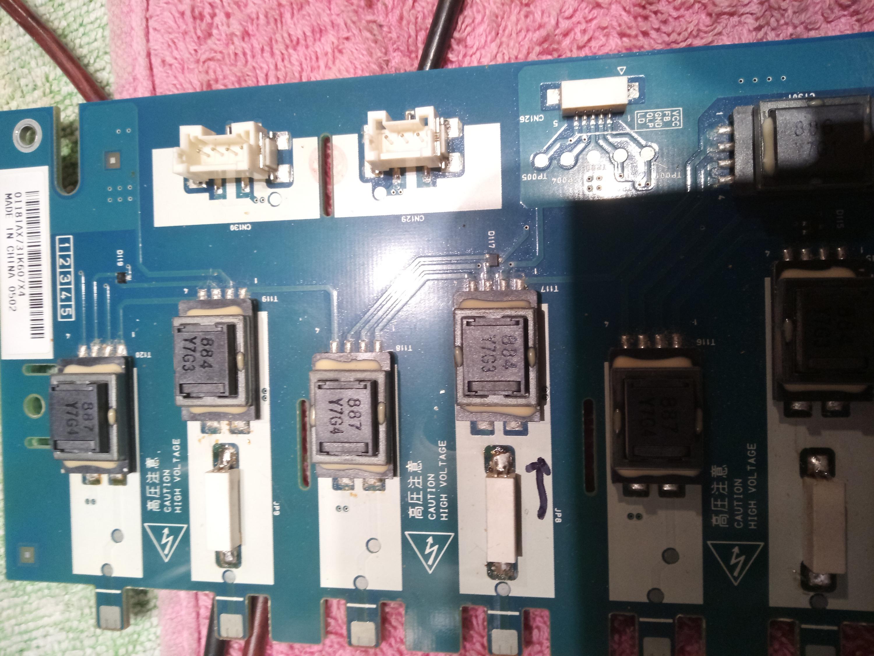 then i soldered up the DF1 board above the psu ,i then removed the cover on the inverter board ,tested the small tx s and compared the resistances in case one was causing the backlight to shut off .