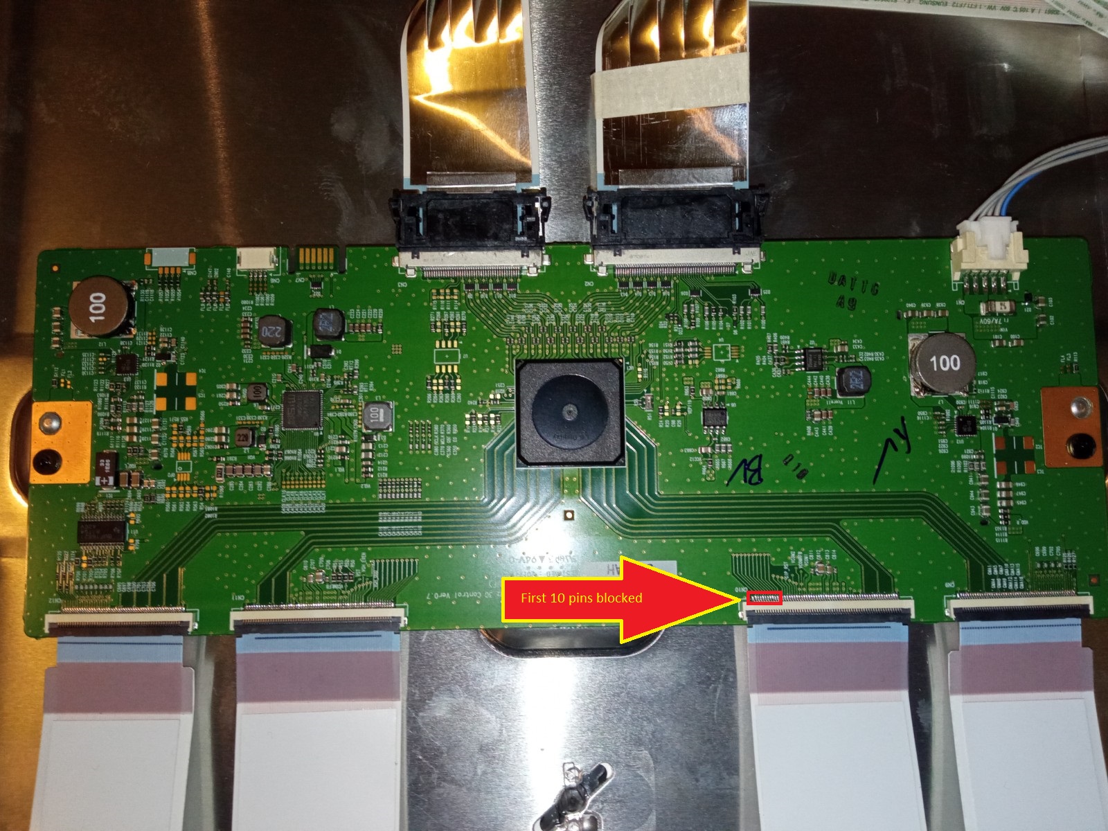 In post #11, on the picture driver_3_1.jpg are the two ribbons that goes to the TCON. But each pair of the driver boards is connected with the mentioned "U-ribbon". You can see the connector on the pictures "driver_3_4" and "driver _4_1".