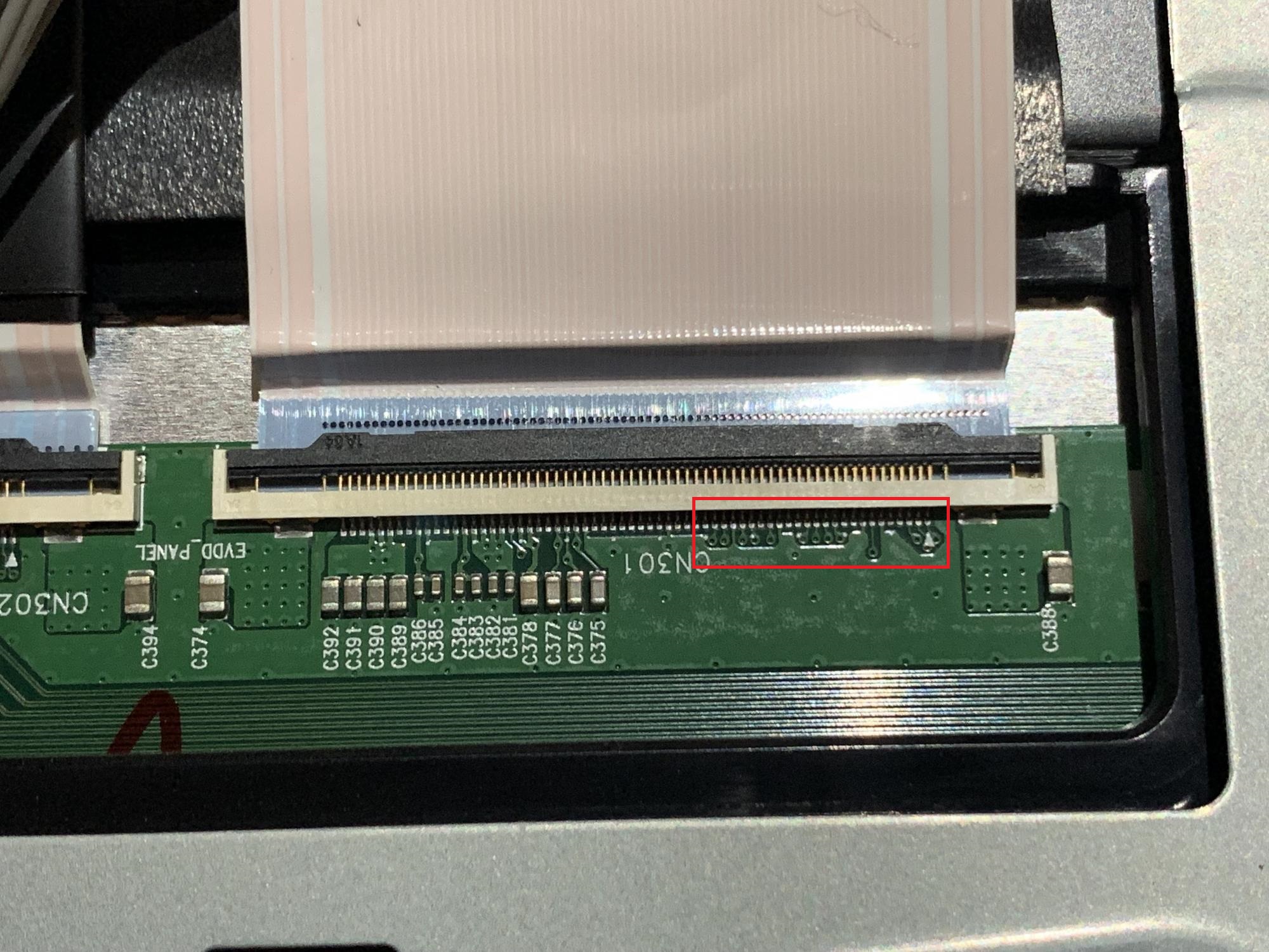 yours panel module are other version i show you.. between yours photo show the LVDS to T-con not correct,, this can damage pins,, inspect and seat correctly