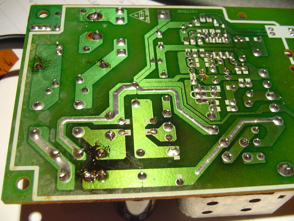 I was 'gifted' with an Insignia home theater unit [dvd player and amp in single unit] Model IS-HTIB101071 dated May 2005. Friend said unit was dead. I opened it and found main fuse blown [F1]. D4 diode [1N5406] shorted. It's full of samxon 85C GF and GR series caps. I'm planning on replacing all 4 diodes and a full recap with panny FC's. It looks like the board got hot around the diodes.