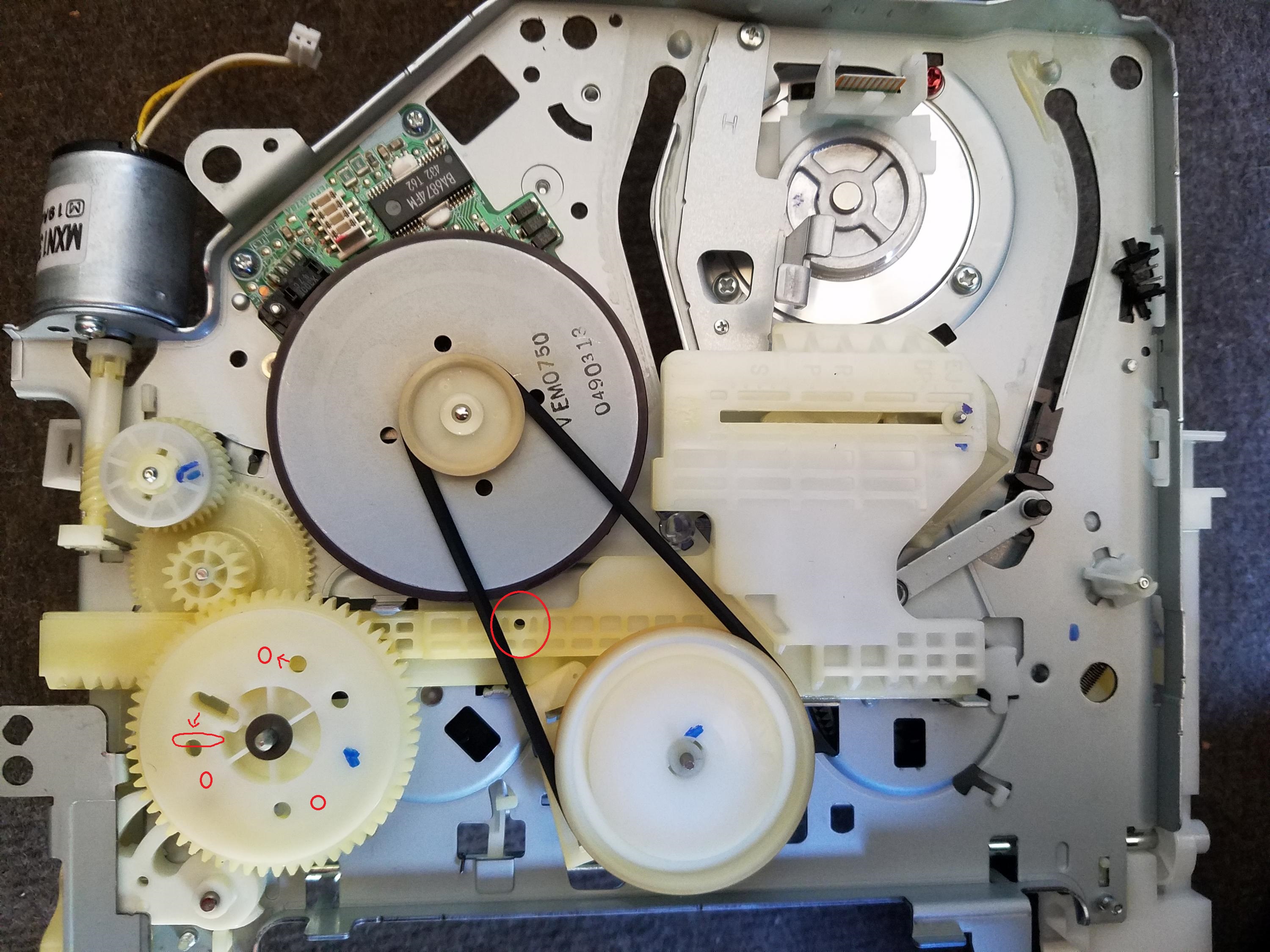 With the mechanism out, can you take a picture of the circuit board which would be just below it? I would like to see the position of the mode switch.