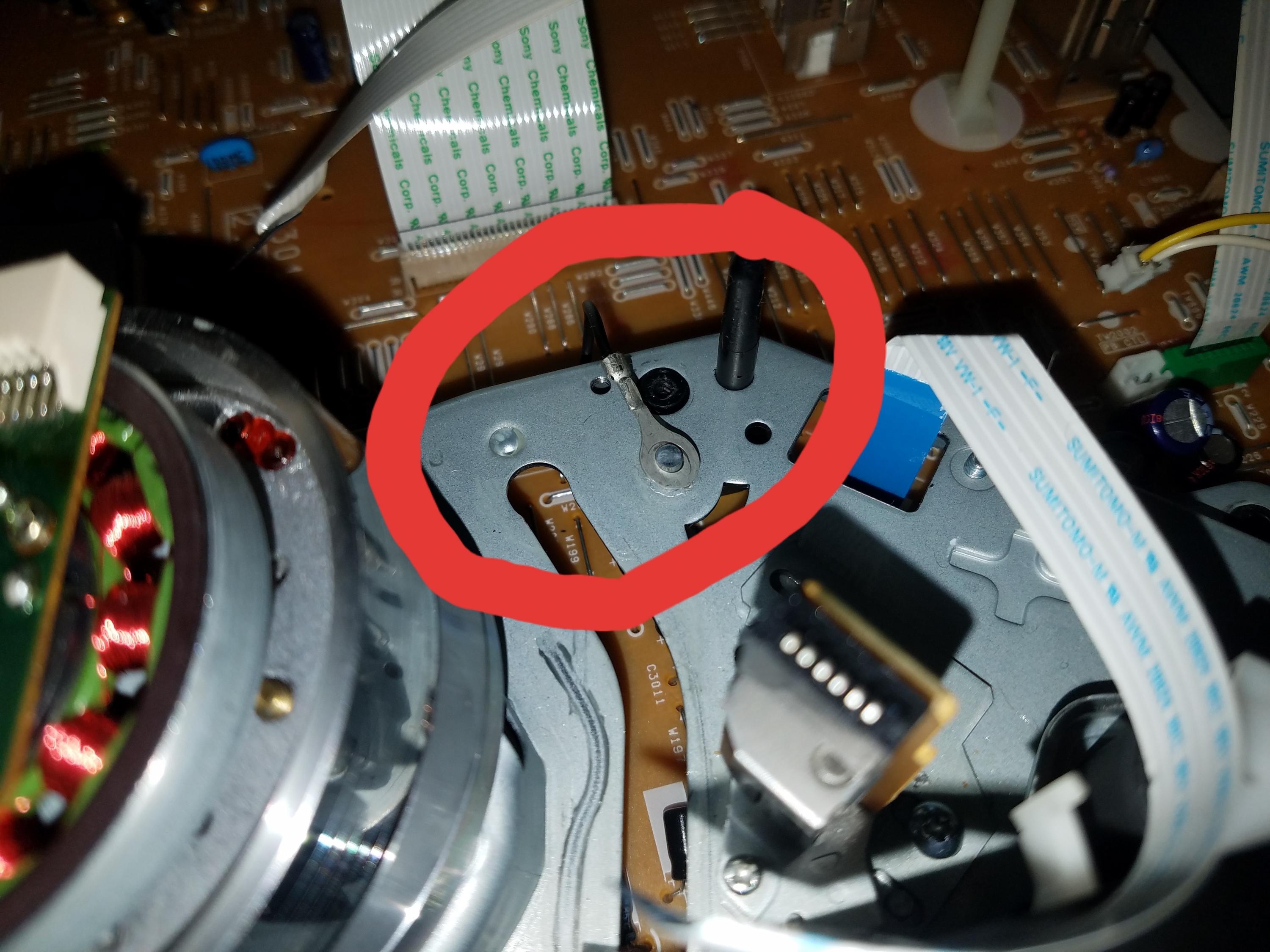 That is just a ground wire, it goes under that missing screw, see this picture. Sometimes you can just pop the top part of the mode switch off, It is held in place by 4 little tabs but to get to them you need to remove the board from the vcr plastic case. Once it is open you can use an eraser or q-tip to clean the contacts or better is a fiberglass burnishing brush. then I re apply the contact grease.