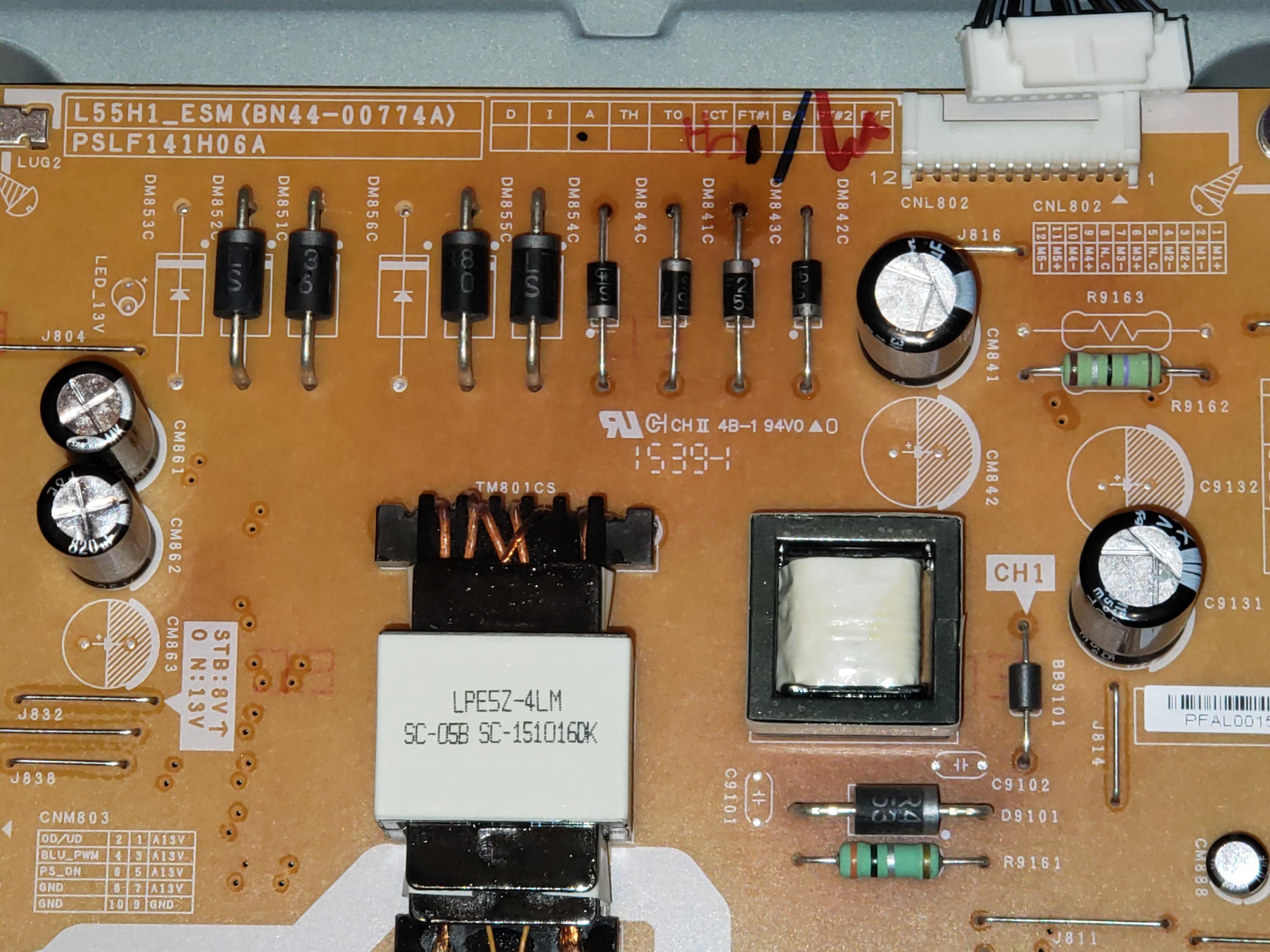 I tested the large diodes on the power supply - seem to be fore the 13 V, and I get steady 12.9 V. The smaller diodes all tested (desolder one lead and check resistance both direction - one direction is about 6 M Ohm, and other direction is open (High Impedance)