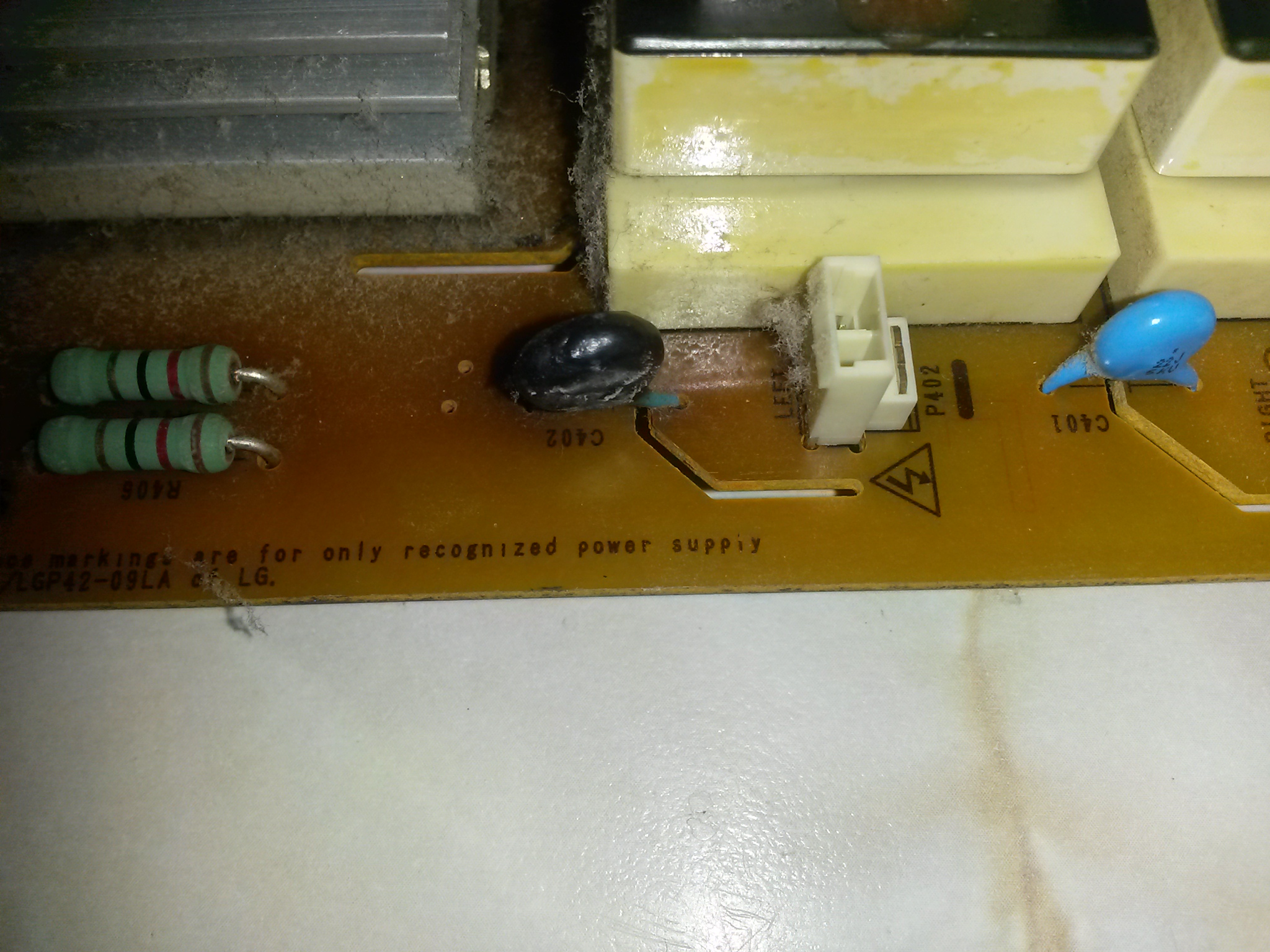 I have a LG 42LH3000 psu EAX55357705/4 that the C402 capacitor has broken down on the inverter side. The C401 is a 22pf 6KV however the C402 looks slightly larger hence I need to ensure I get the correct value for it.