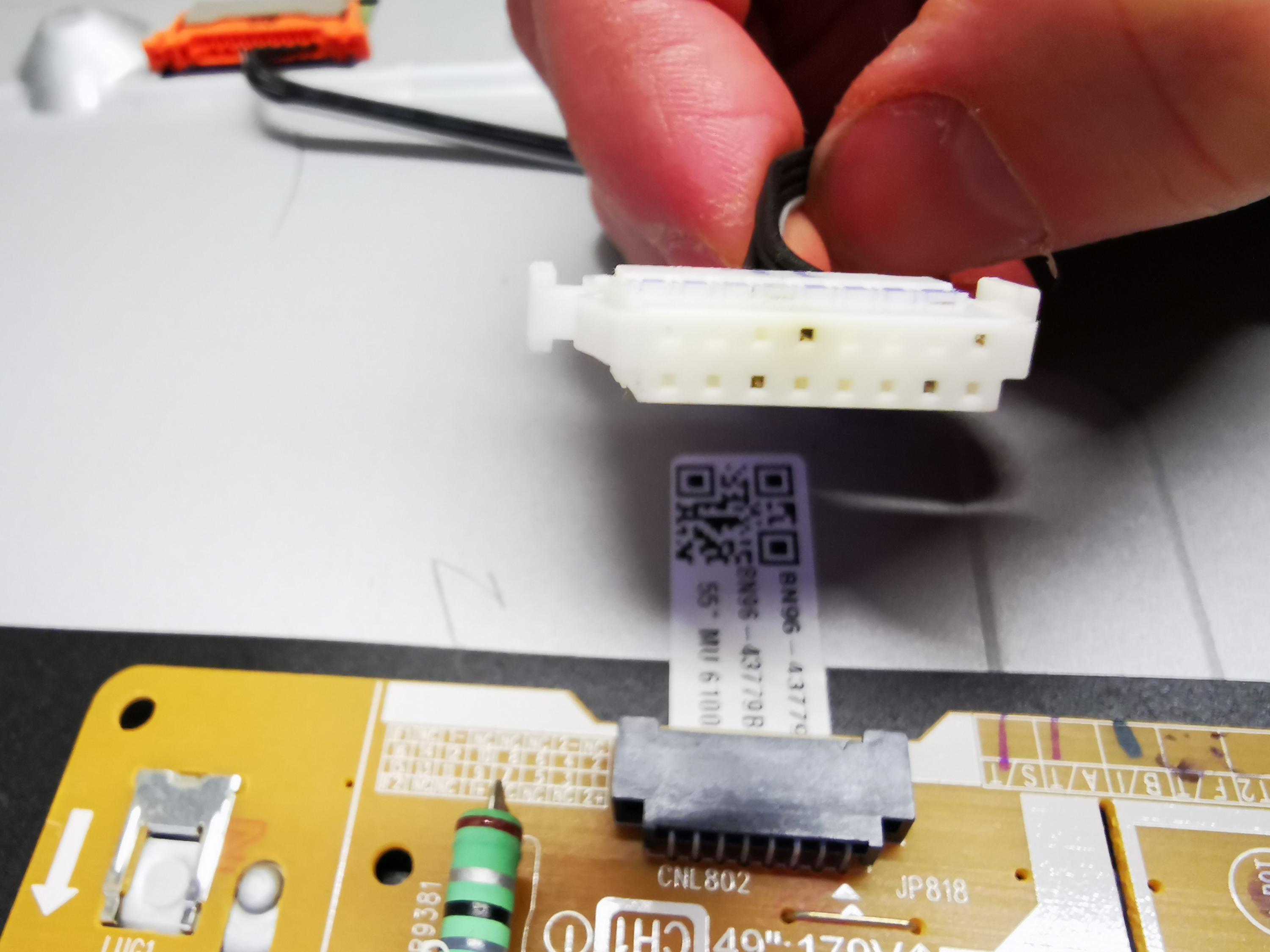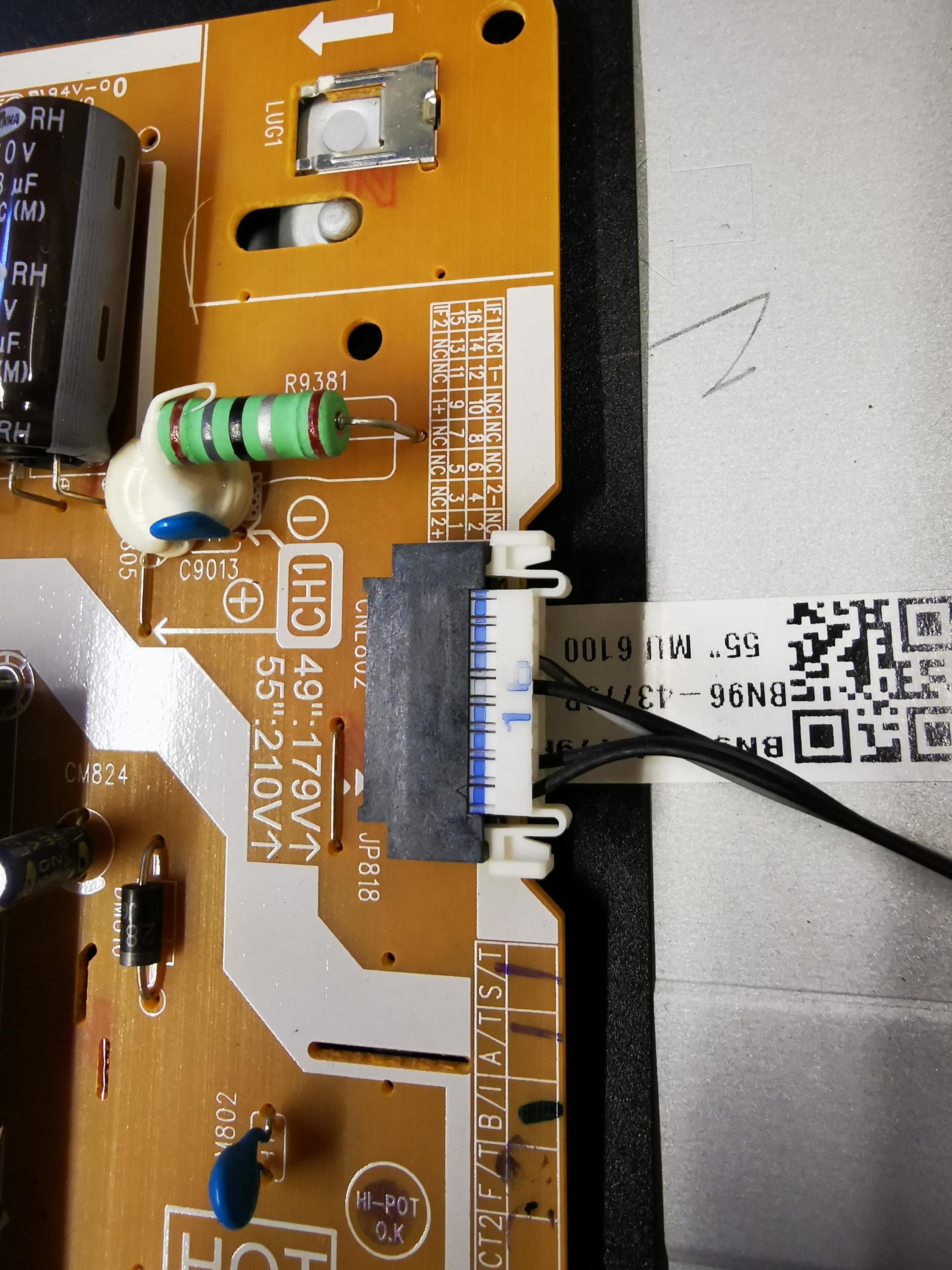With the old board in and everything plugged in, just get back light on, and I can hear the interface sounds when I press menu/hub etc. With the new board, with everything plugged in, back-light comes on for a few seconds then the TV cycles off, with one more flicker of the back light. However, when I unplug one of the two tcon ribbons, I get the back light stay on and I again can hear menu sounds, although this time only with the up or down arrows (I assume it's in setup menu or something)