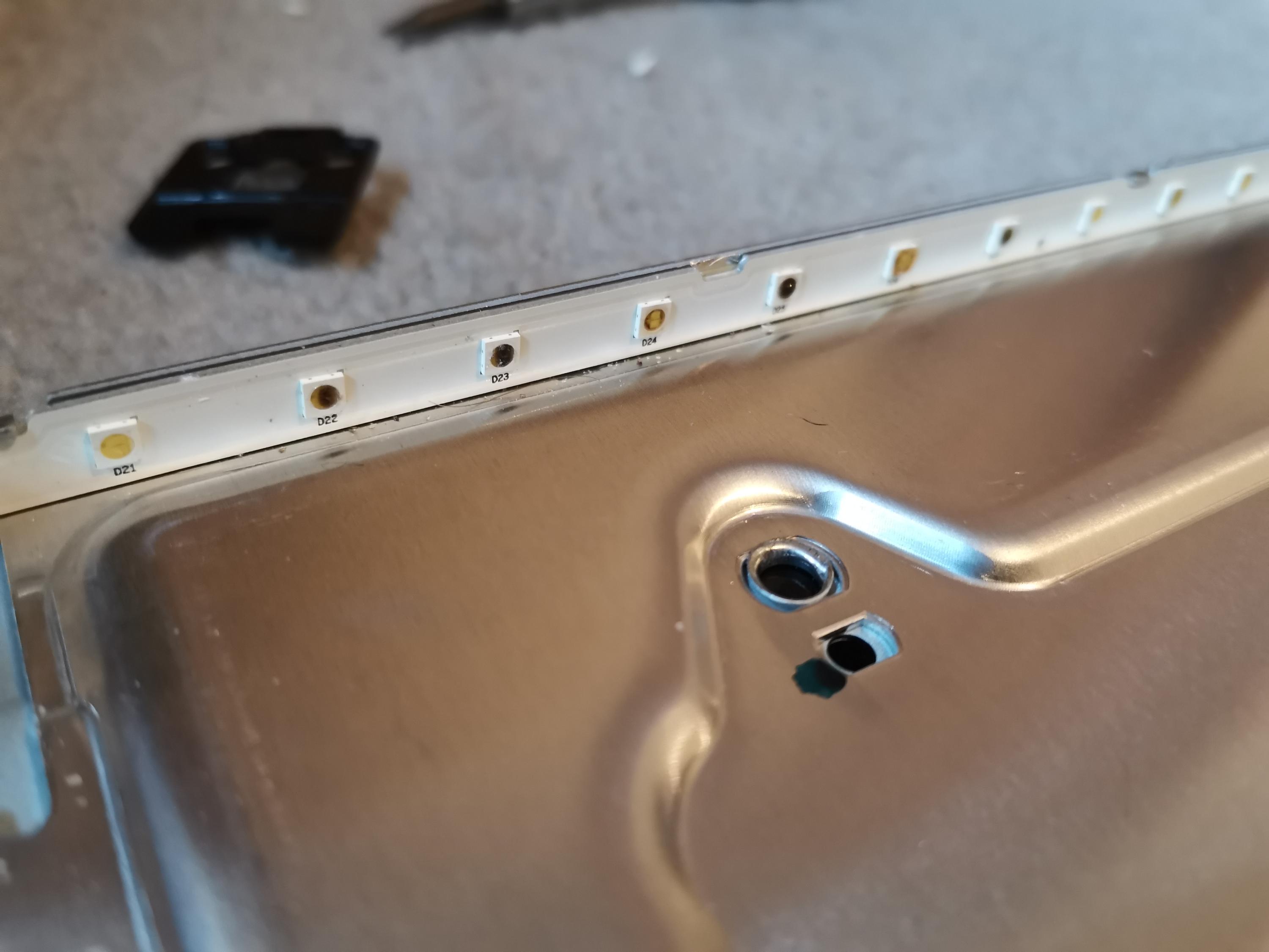 Not to open another thread - I have another TV from thresame family, UE55NU7172, bought as half screen not being backlit. After a quick inspection I have noticed black bars on the dark section of the screen. The TV has been previously opened and it seems that someone did or tried to disasseble the panel, probably to get to the baclights.