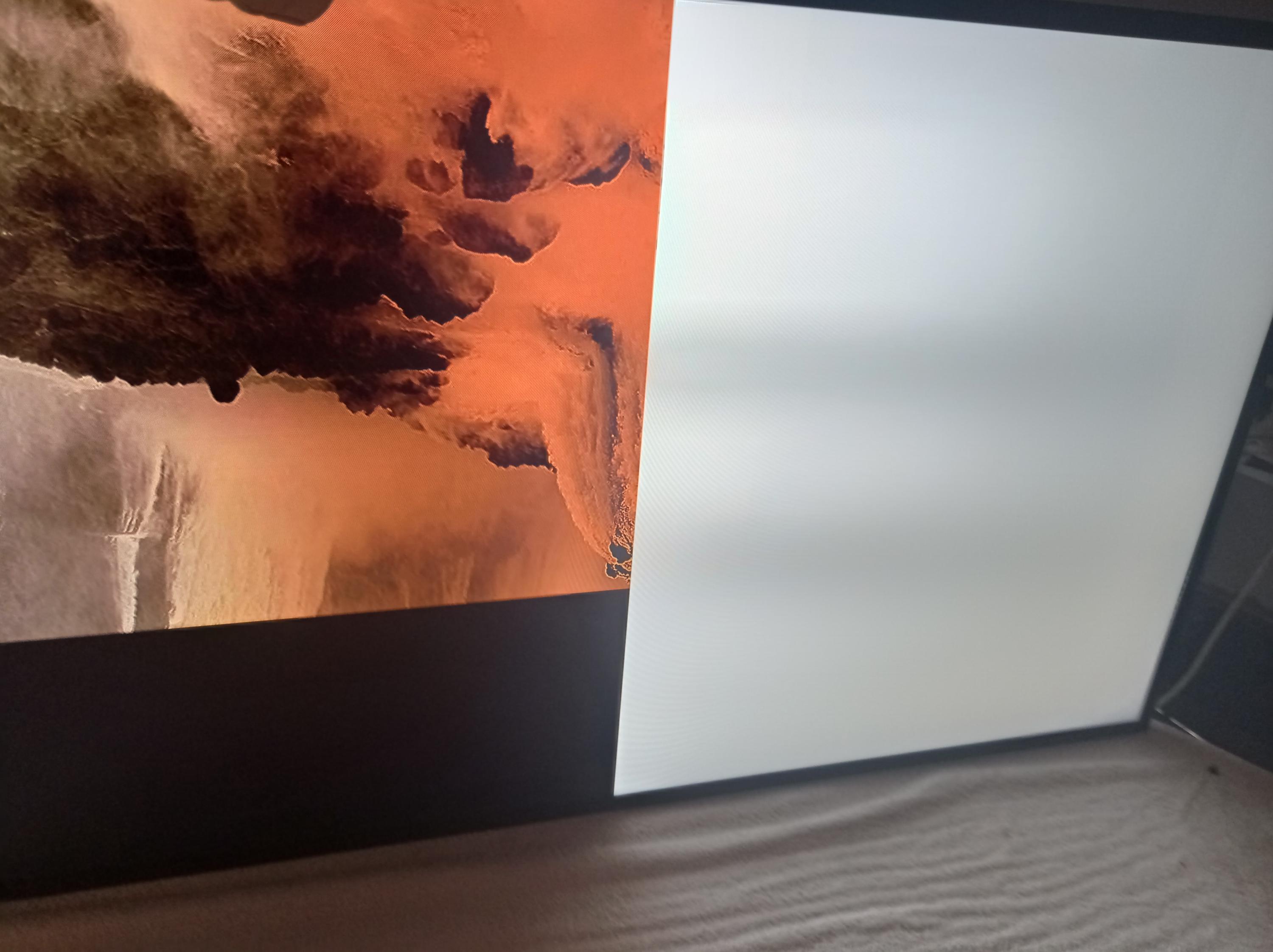 this tv shows a big area (like 1/3) at the top of the screen darker than the rest, like a rectangle shadow but his shadow has sharp edges, is not like faulty leds darkness.