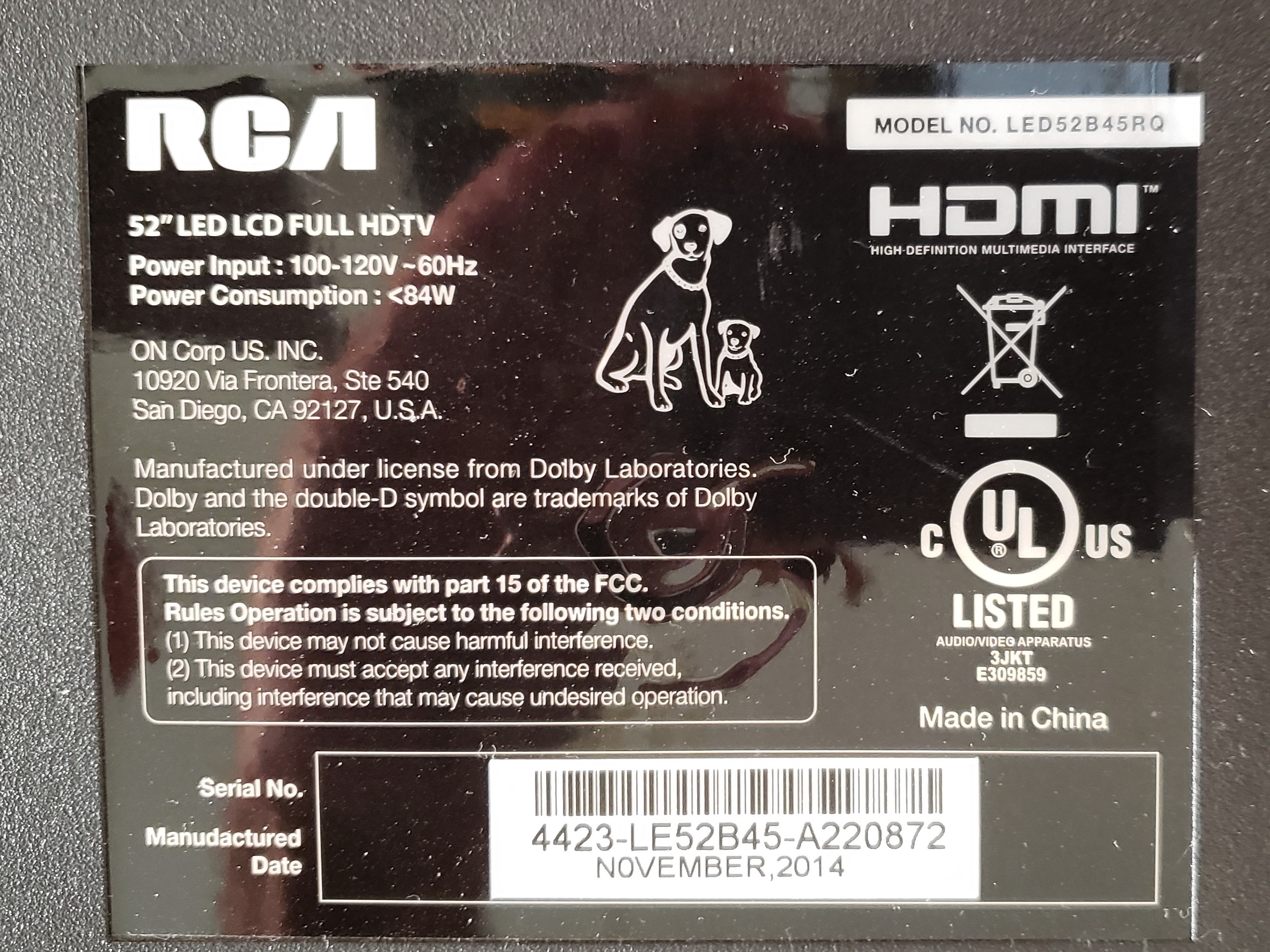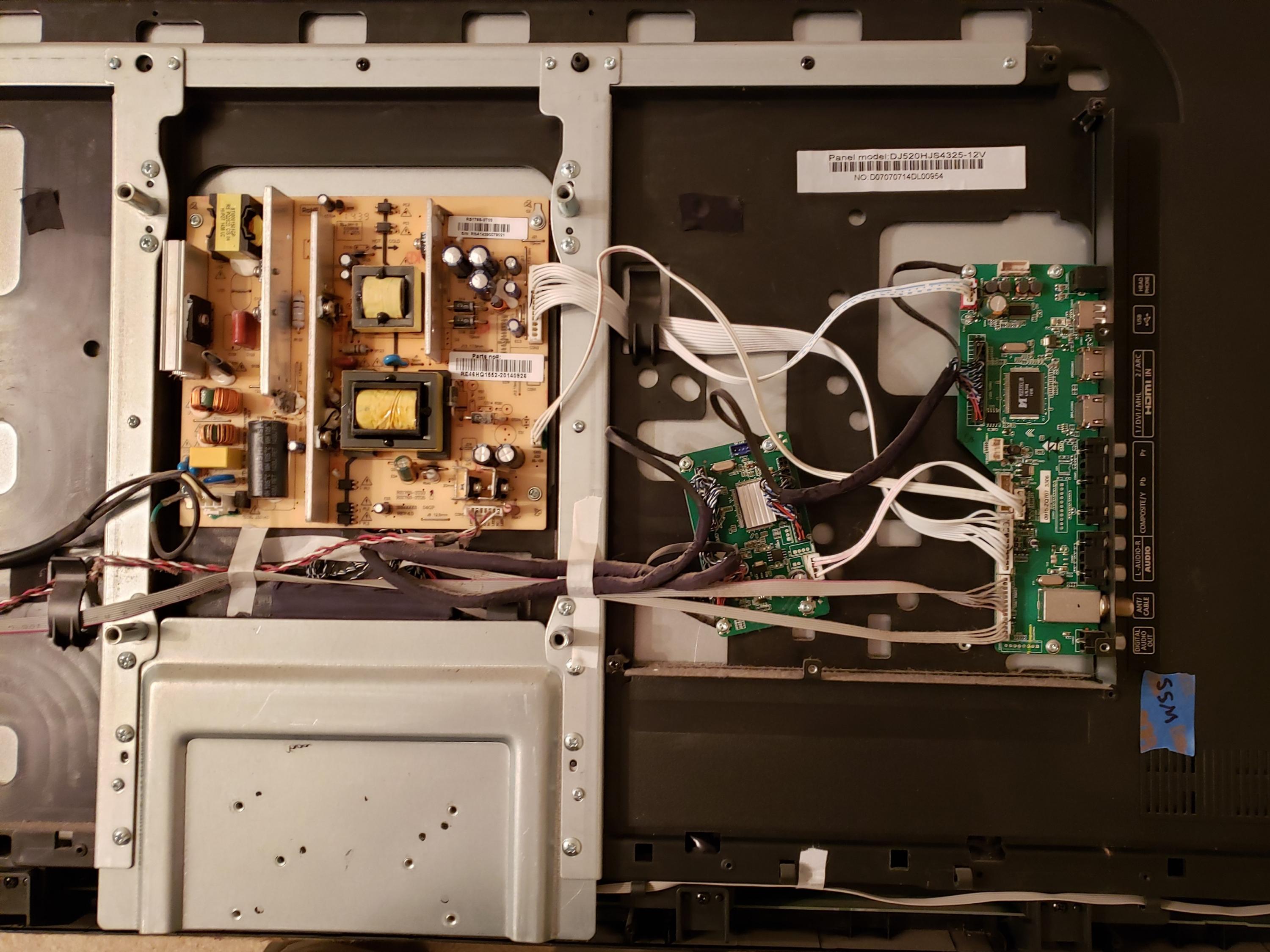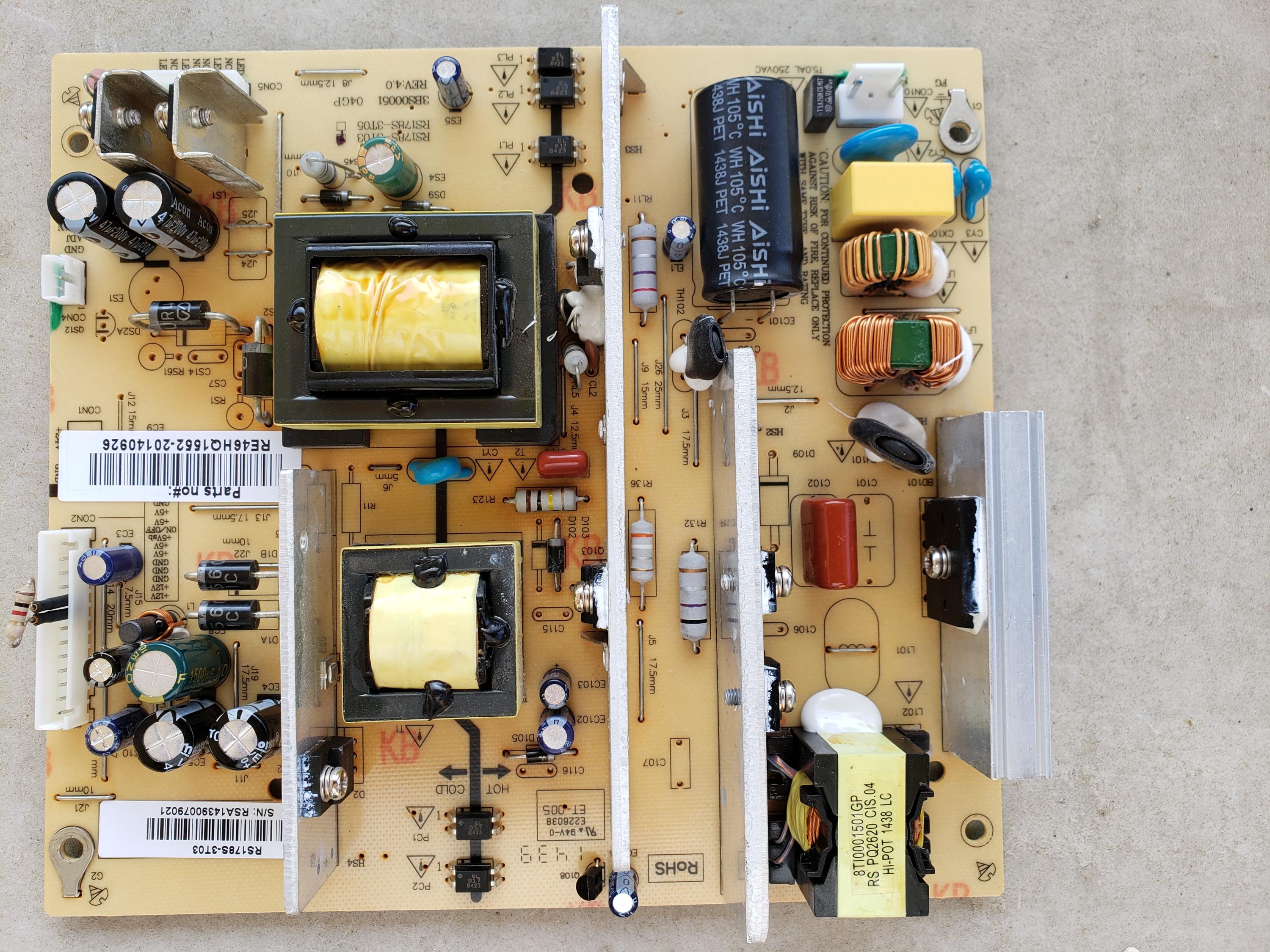 RCA LED52B45RQ no video, no backlight, status light illuminated red and does not change when power is depressed. Power Supply shows a constant on state (On/Off 4.6V) when plugged in and voltages at the connector appear normal, but PFC voltage is only 165 volts suggesting no boost.