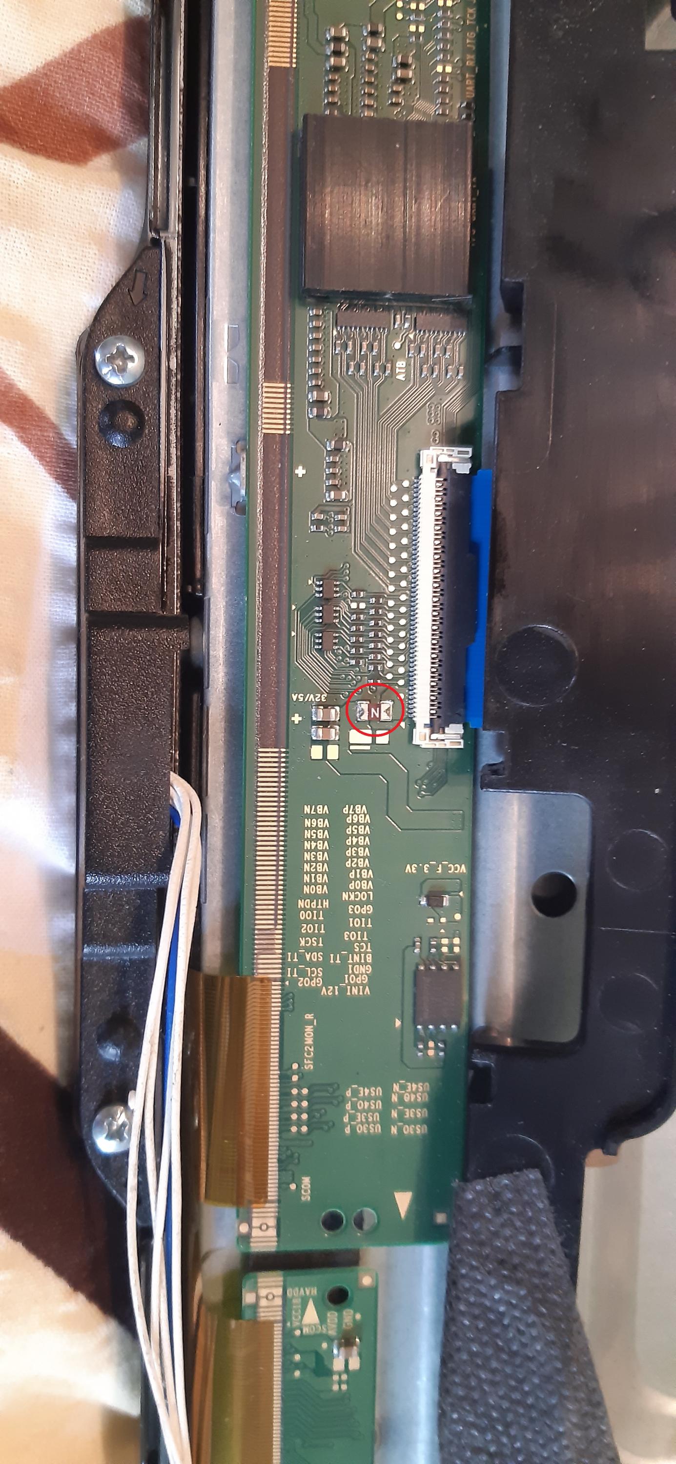 When I turn TV on - TV starts backlight is ON but no image no logo no picture on the screen. On motherboard optical socket is glowing red. TV rensponce on remote I can turn on and off via remote