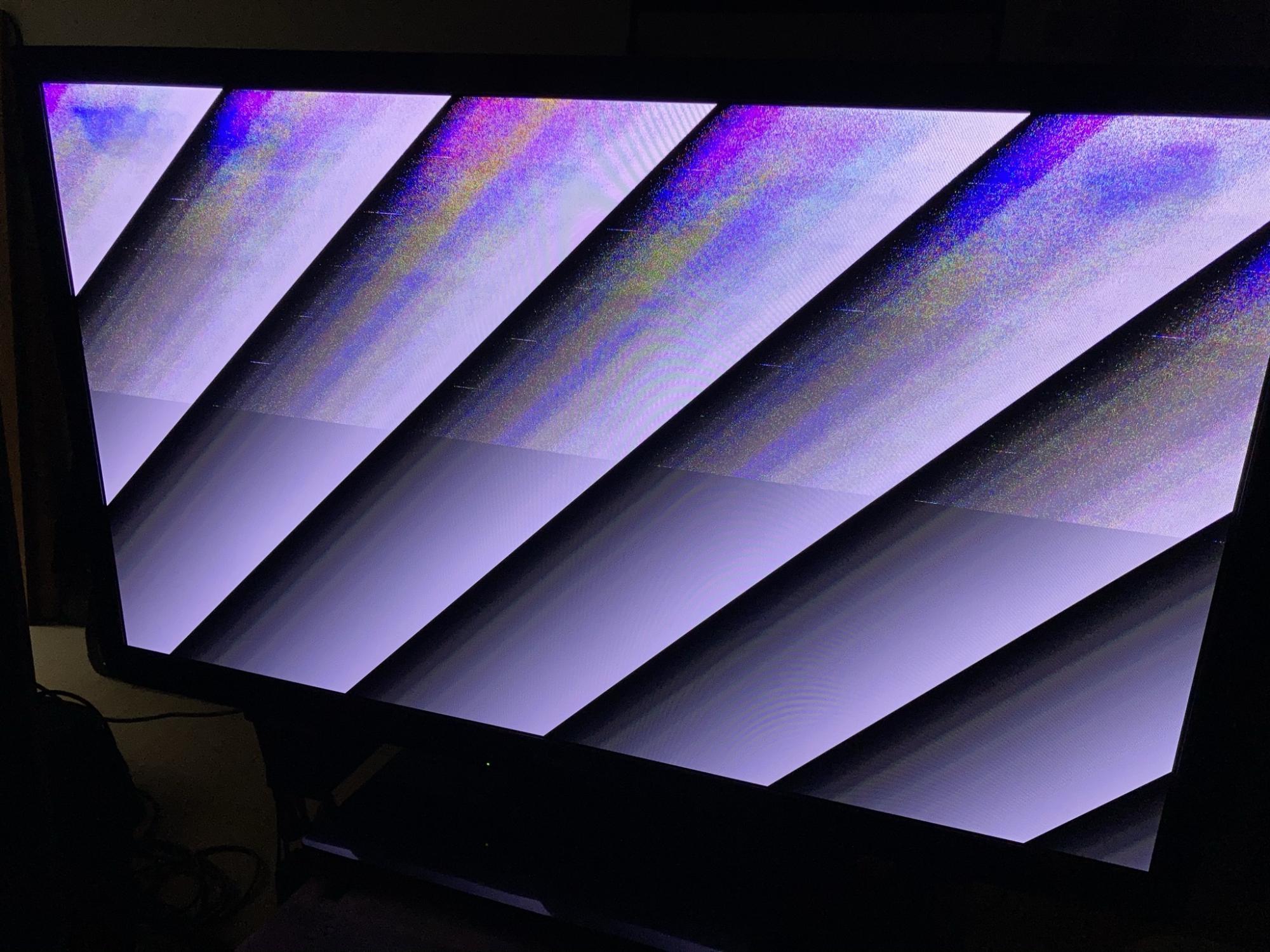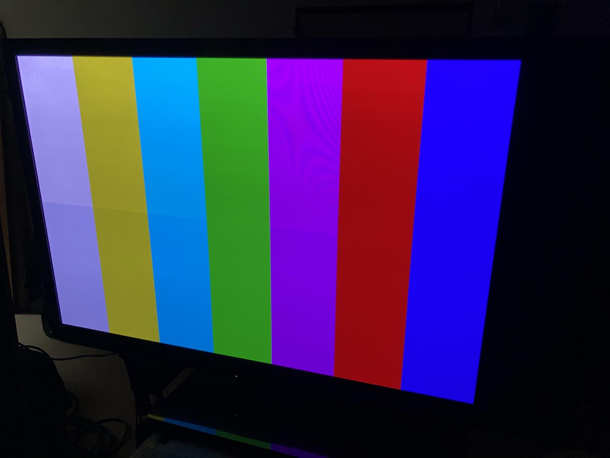As said, set is running up without failure mode and screen appears. Upper half is extremely bad, but also light sparkling can be seen on bottom part plus brightness problem, see pictures for test patterns. Strange to me all patterns show the problem except clear colours (RGB). See blue and also color bar.